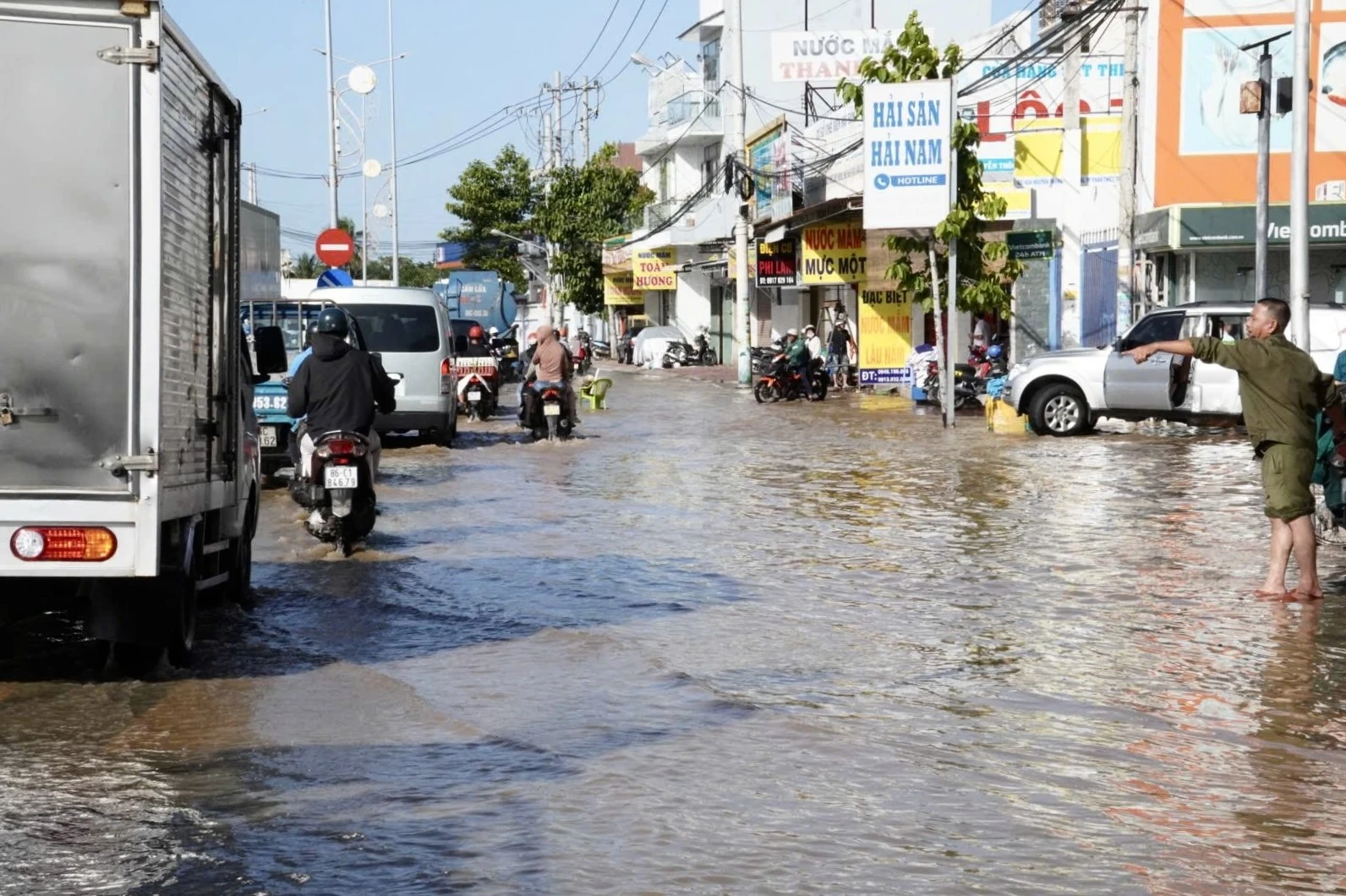 9h sáng 5/12, mực nước tại một số khu vực ngập lụt trên địa bàn Bình Thuận cũ đã có dấu hiệu thuyên giảm. Tại đường Nguyễn Thông (phường Phú Thủy), phương tiện cơ giới có thể di chuyển qua lại. Hình ảnh chụp lúc 9h sáng 5/12.