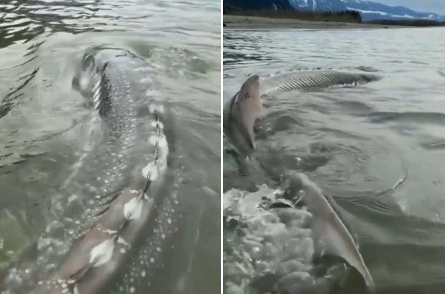 Cá tầm dài hơn 2,7 m nhảy lên đớp mồi ở Canada