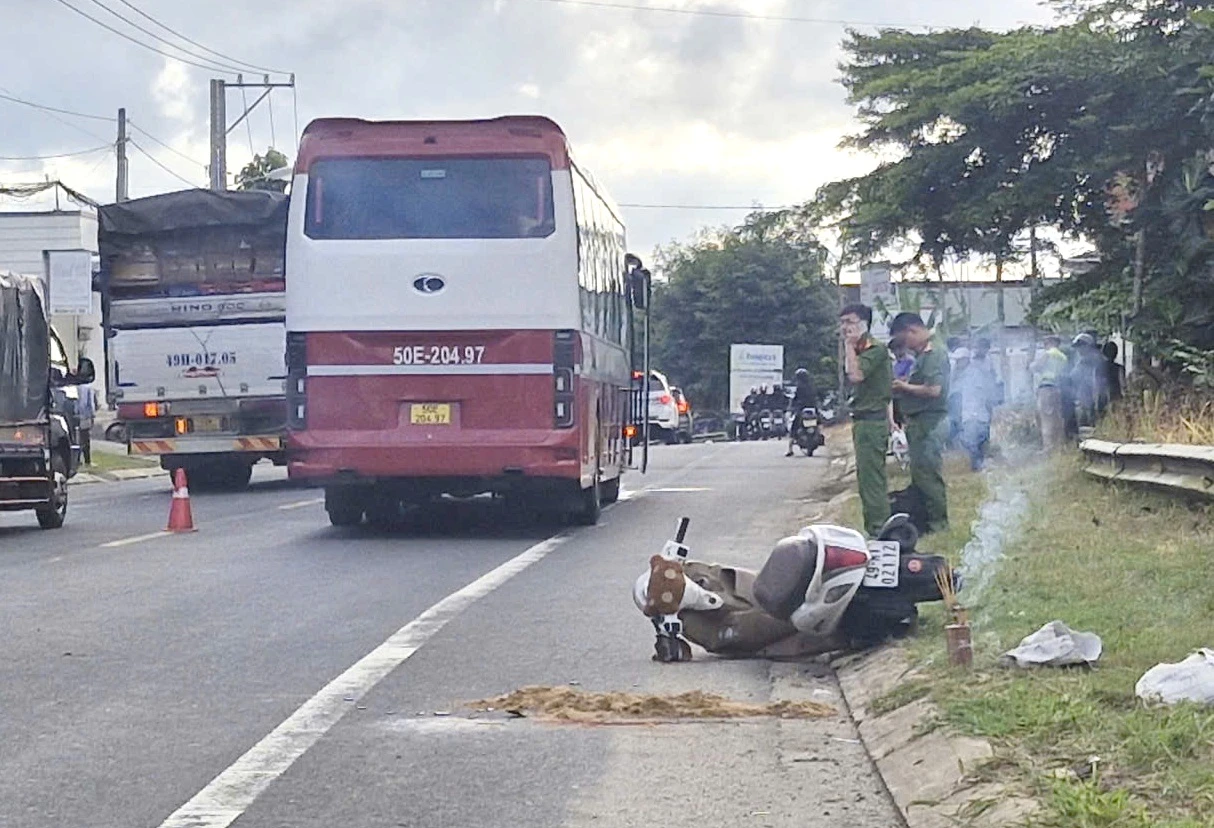 Đang chạy xe máy trên quốc lộ ở Lâm Đồng, chị P. va chạm với xe khách rồi ngã xuống đường tử vong.
