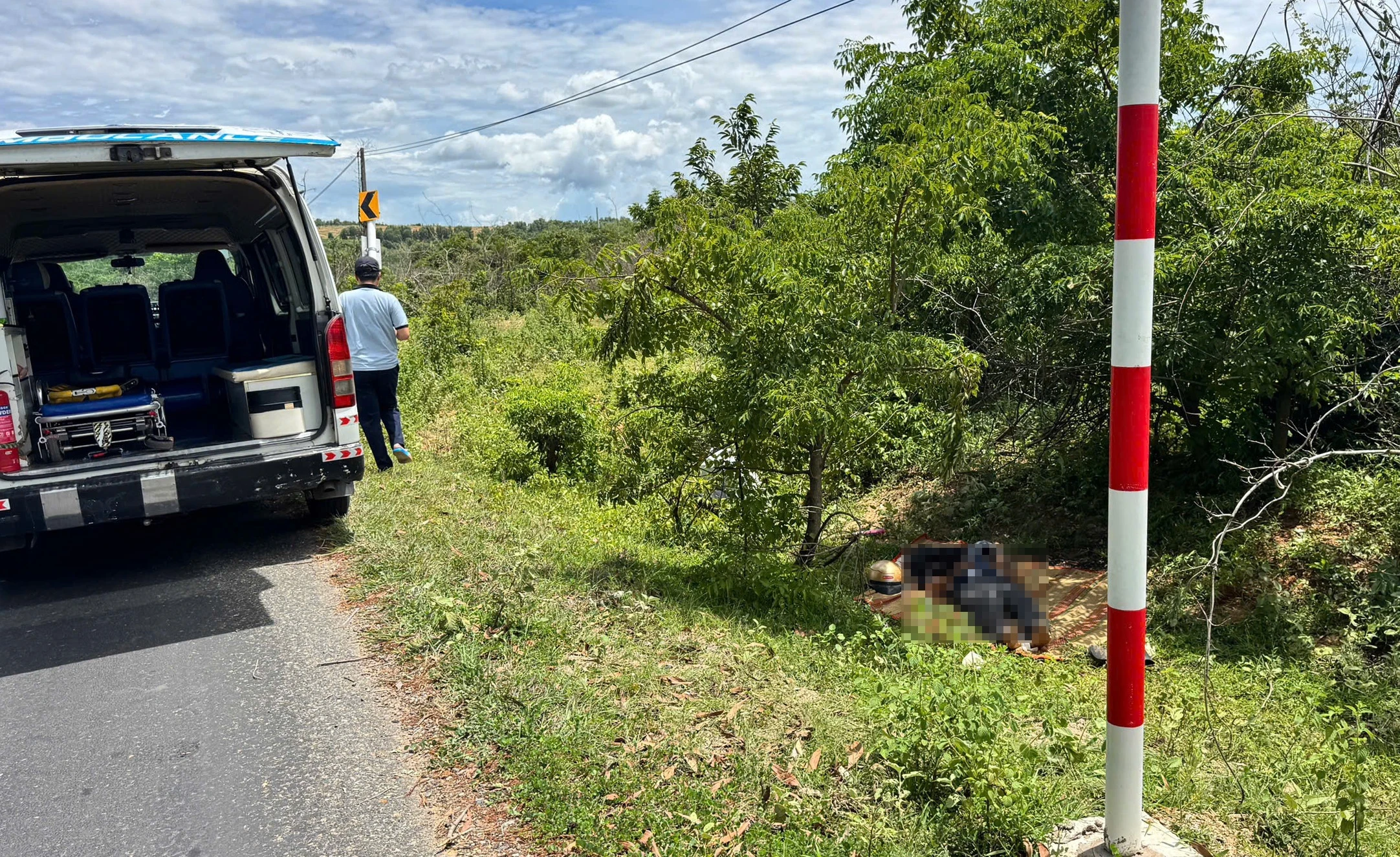 Thi thể nạn nhân được người dân phát hiện cạnh tỉnh lộ ở Lâm Đồng (Ảnh: Tuấn Duy).