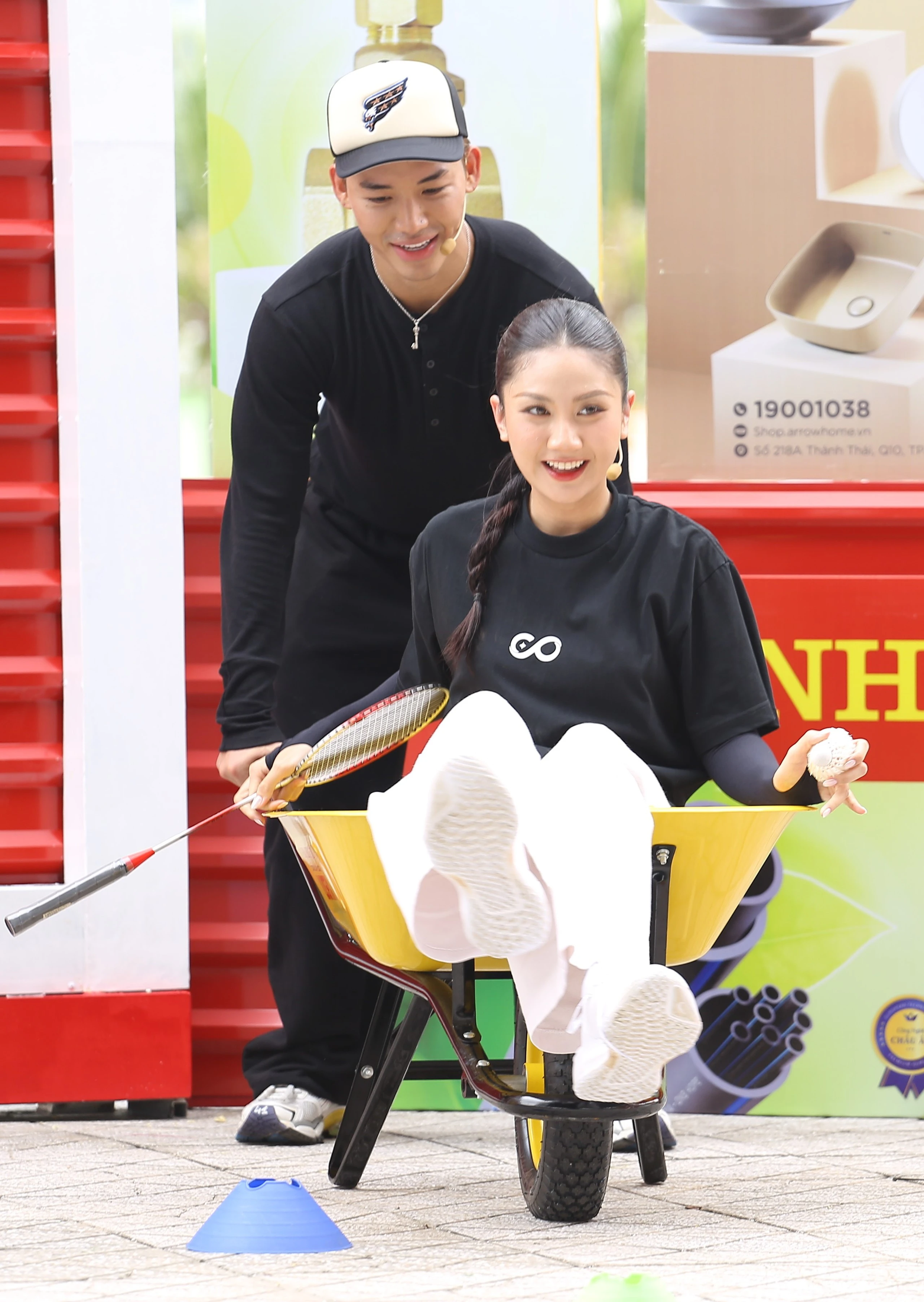 Phương Linh và đồng đội hết mình với các thử thách của Mái ấm gia đình Việt . ẢNH: BTC