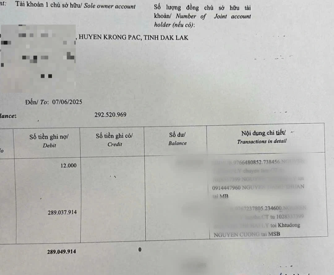 Sau cuộc gọi vài phút, bà L. tá hỏa phát hiện tài khoản bị trừ 289 triệu đồng. Lúc này, đối tượng tiếp tục bảo bà gọi điện vay thêm người nhà để nộp vào tài khoản và làm theo hướng dẫn để được hoàn lại toàn bộ số tiền.