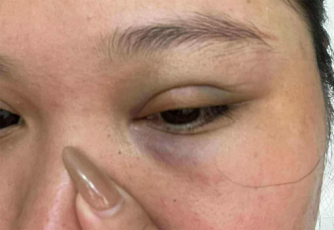 Chị Nhi cho biết, chị là mẹ đơn thân, nên sau khi sơ cứu, chị xin bác sĩ cho về nhà điều trị vì không có người trông con. Chi phí chữa trị do chị tự lo liệu. “Mắt tôi sưng tím, đau nhức. Tôi không thể nằm viện lâu vì còn phải chăm con nhỏ” – chị Nhi chia sẻ.
