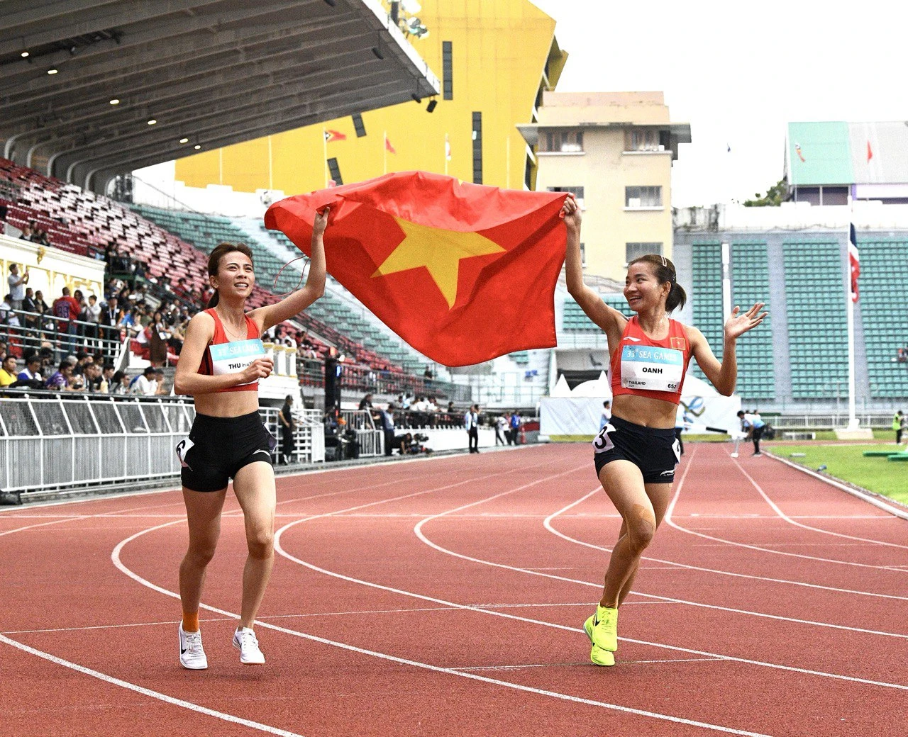 Kỳ tích tiếp tục gọi tên “ nữ hoàng điền kinh ” Nguyễn Thị Oanh khi cô xuất sắc giành tấm HCV ở nội dung 3.000m vượt chướng ngại vật, mang về tấm HCV thứ 43 cho Đoàn Thể thao Việt Nam trong ngày 16/12. Niềm vui càng trọn vẹn hơn khi đồng đội Đoàn Thu Hằng cũng cán đích ở vị trí thứ hai ở cùng nội dung, hoàn tất cú đúp huy chương cho Điền kinh Việt Nam.