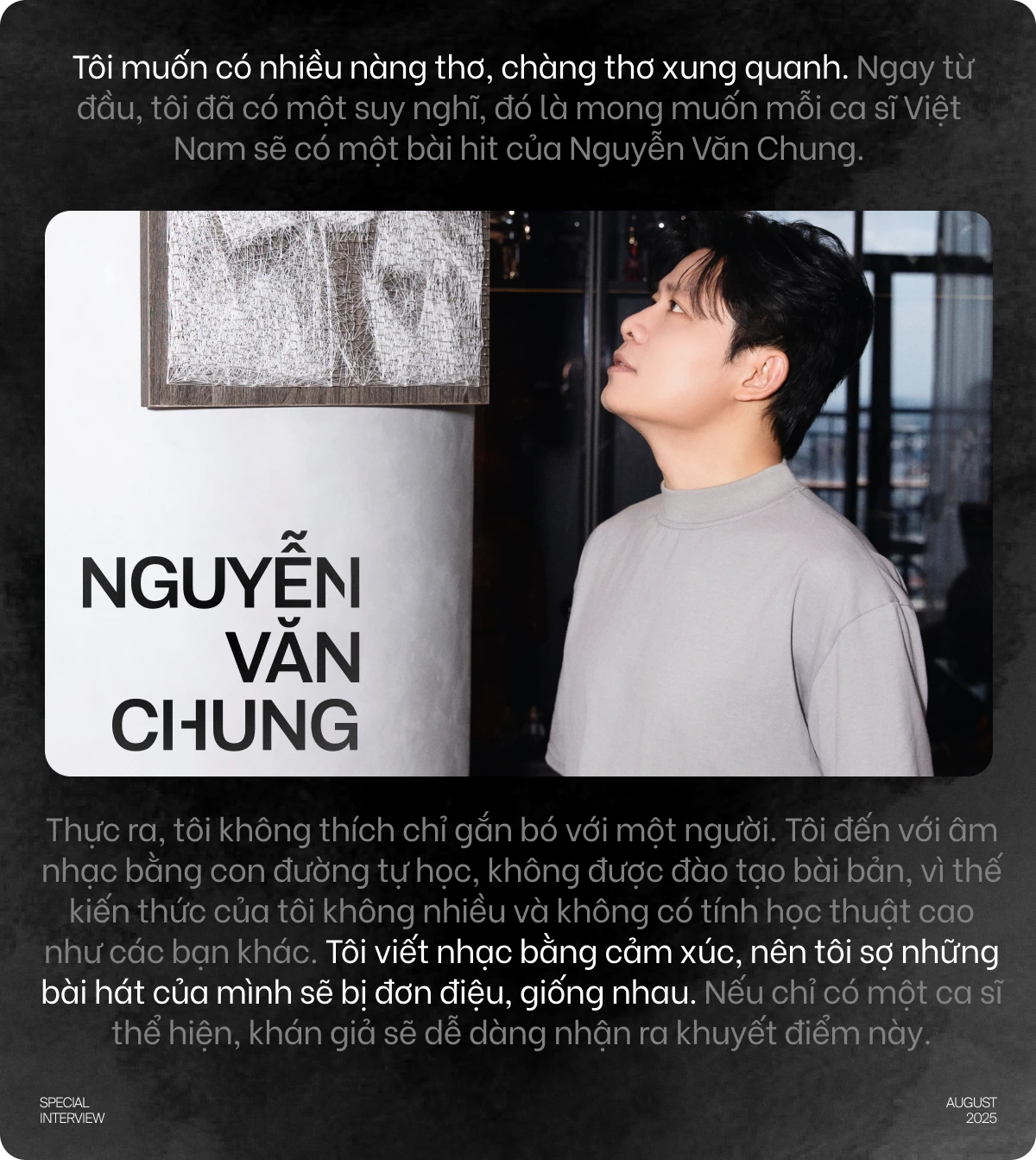 Nguyễn Văn Chung liên tục thay đổi, không đi ngược xu thế, mà đơn giản là tạo ra con đường riêng, để mỗi nốt nhạc vang lên đều là một câu chuyện rất thật của chính cuộc đời anh.