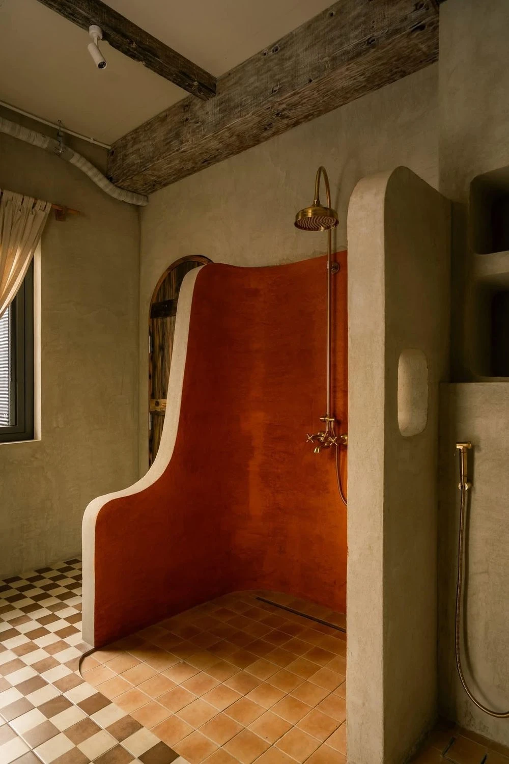 Các phòng tắm được phân chia khô ướt rõ ràng, giản dị nhưng đầy đủ tiện nghi. Các phòng ngủ cũng thống nhất với tinh thần thô mộc và cá tính, tạo nên không gian nghỉ ngơi vừa thú vị vừa thoải mái cho người sử dụng.