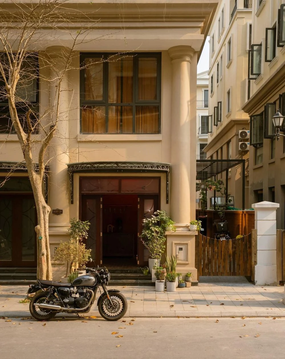 Bạn có thể sử dụng bàn ghế xếp làm vật trang trí là một ý tưởng rất tuyệt vời. Bên cạnh đó, các gia chủ còn có thể bổ sung thêm một số màu sắc thiên nhiên như chậu hoa hay lãng hoa treo đẹp mắt, ấn tượng.