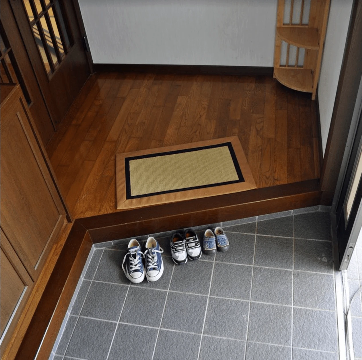 Ấn tượng đầu tiên khi bước vào một ngôi nhà Nhật Bản là khu vực tiền sảnh thường được xây thấp hơn nền nhà chính. Thiết kế này không chỉ mang ý nghĩa văn hóa – nơi cởi giày trước khi vào nhà – mà còn có tác dụng phân tách rõ ràng giữa không gian bên ngoài và không gian sinh hoạt bên trong.