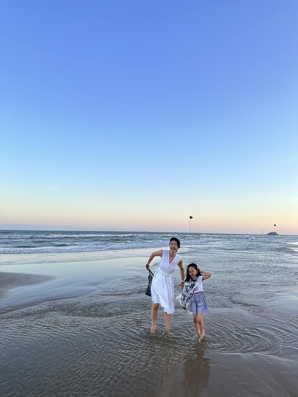 Là cơ trưởng của hãng hàng không quốc gia, thường xuyên bận rộn bay lượn trên bầu trời nhưng cô luôn cố gắng cân bằng giữa cuộc sống và công việc. Cô luôn tranh thủ thời gian bên con, đồng hành cùng con, để tuổi thơ của con không bị vắng bóng người mẹ. Cuối tháng 3 vừa qua, nữ cơ trưởng đã đăng tải bức hình hai mẹ con chơi đùa vui vẻ trên bãi biển. Khoảnh khắc ấy thật bình yên nhưng cũng thật hạnh phúc. Nhìn nụ cười của hai mẹ con, ai cũng đoán được rằng họ đang rất hài lòng với cuộc sống hiện tại.