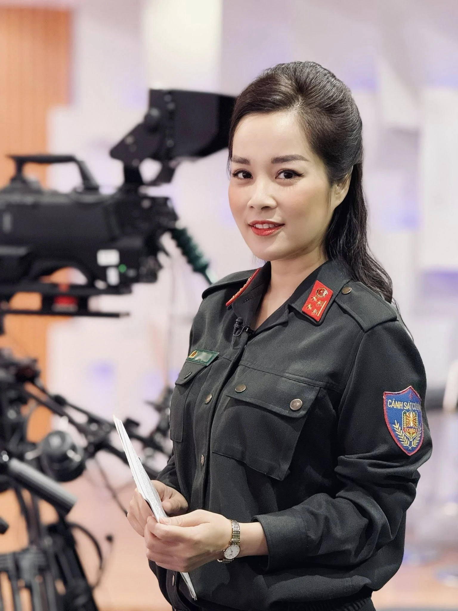 Minh Hương hiện công tác tại kênh Truyền hình Công an Nhân dân, mang quân hàm đại úy
