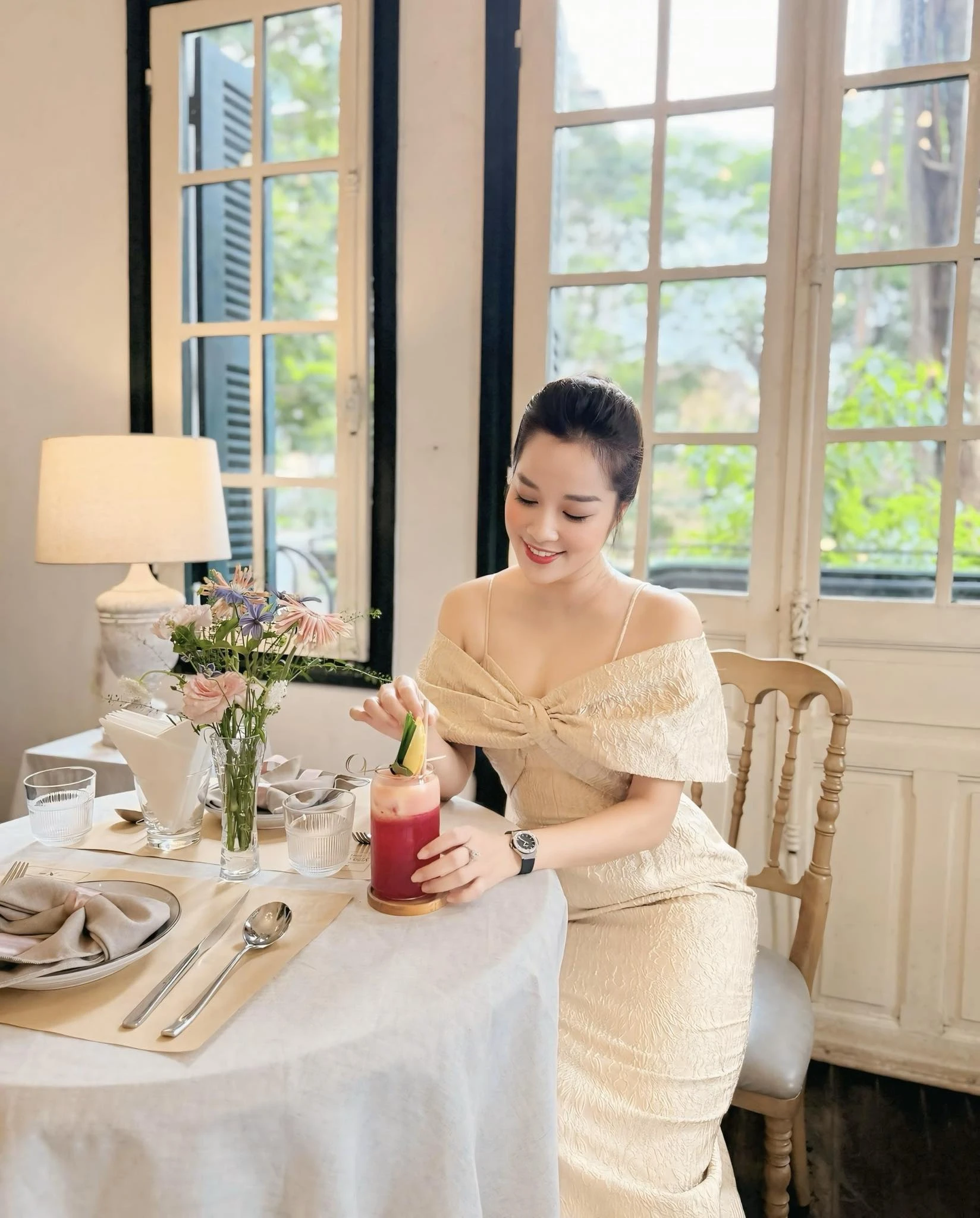 Người đẹp vui vẻ với cuộc sống hiện tại. (Ảnh: FB Le Minh Huong)