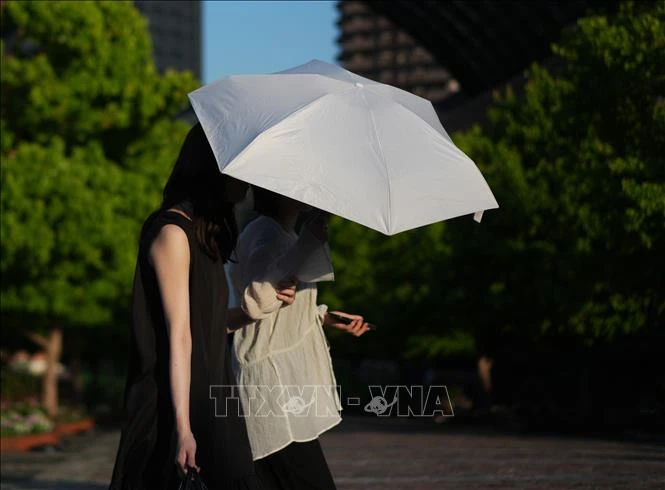 Người dân che ô tránh nắng nóng tại Tokyo, Nhật Bản, ngày 16/7/2024. Ảnh minh họa: Kyodo/TTXVN