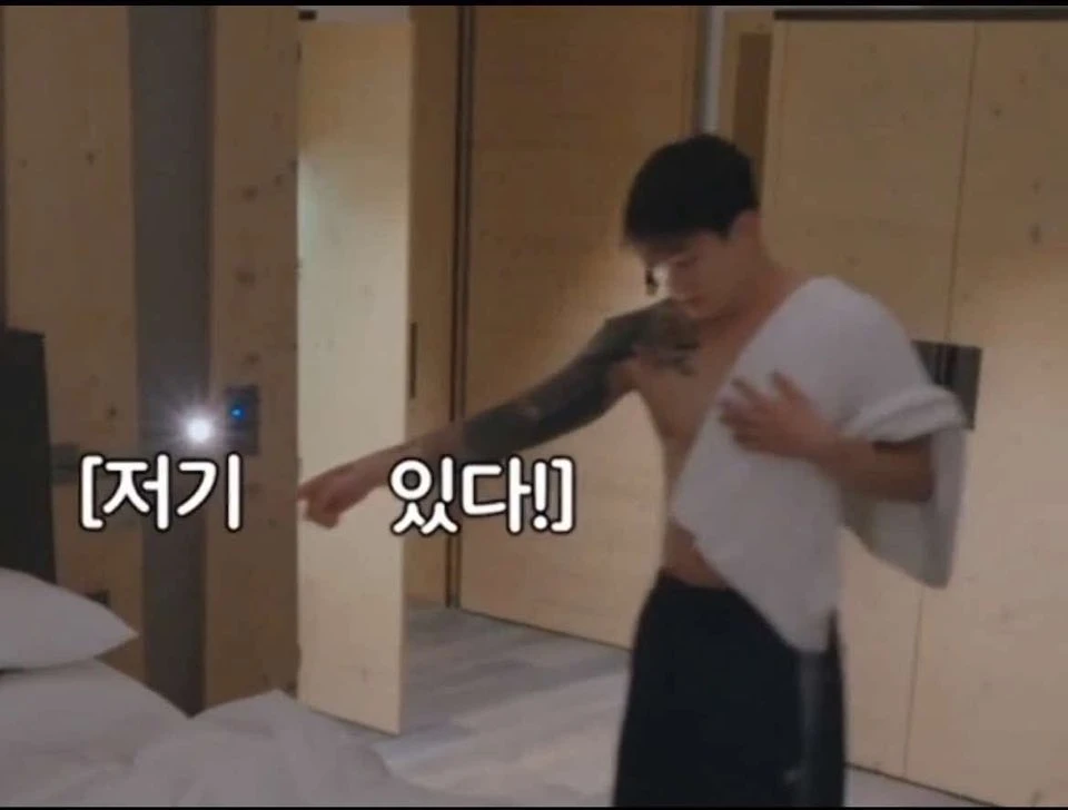 Không mặc áo thì Jungkook lại dùng đến khăn tắm để che. Ảnh: Koreaboo