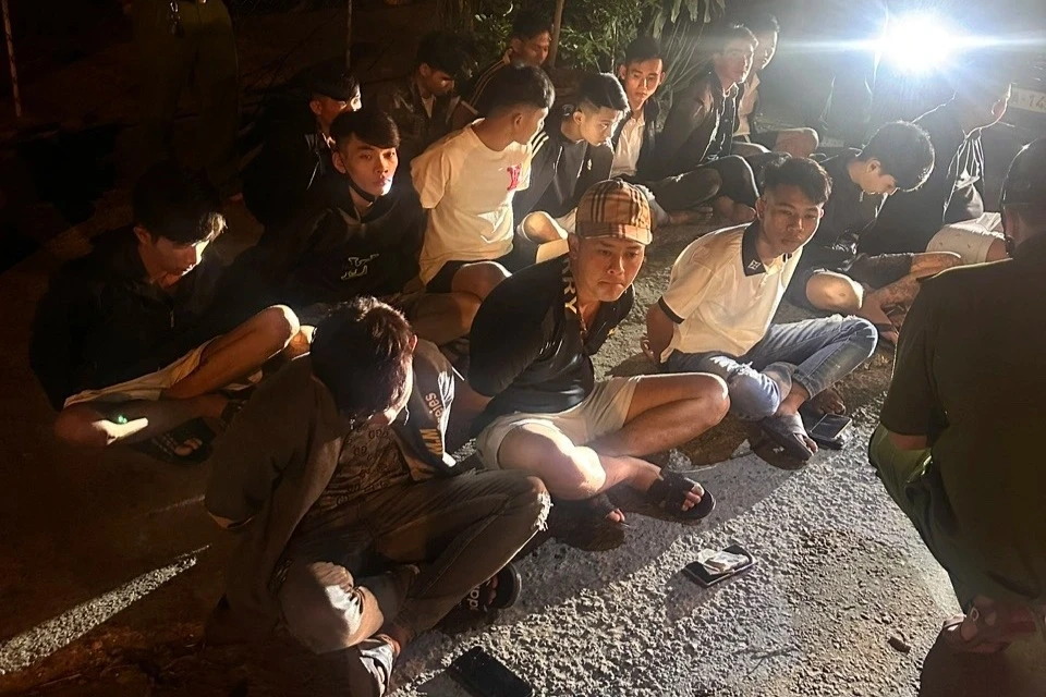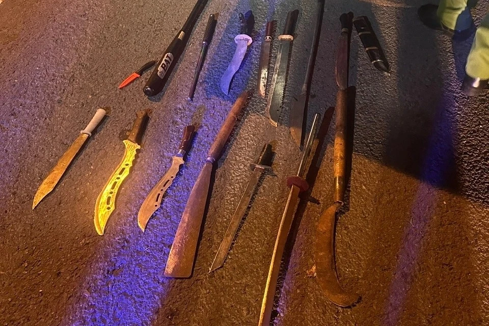 Qua kiểm tra, trên xe có 20 người, cảnh sát còn phát hiện, tạm giữ 16 hung khí tự chế các loại (dao tự chế, dao phóng lợn, gậy bóng chày,...).