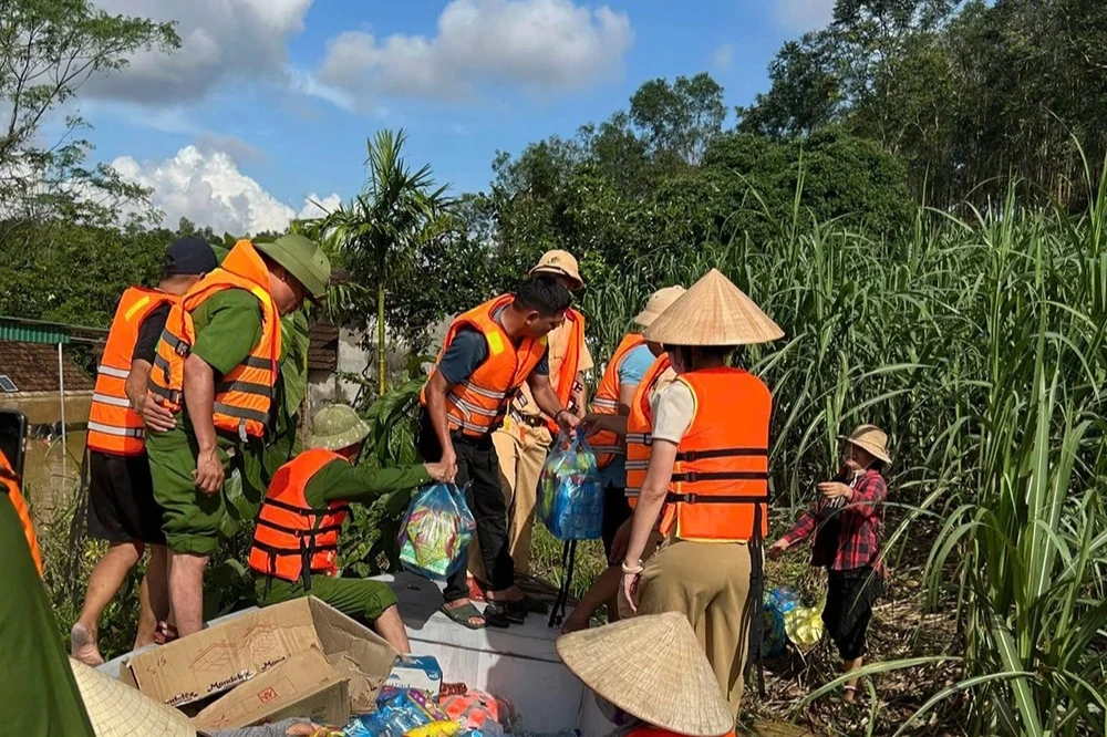 Đến ngày 3/10, nước lũ bắt đầu rút, công an xã đã có thể tiếp cận, hỗ trợ người dân bằng đường bộ.