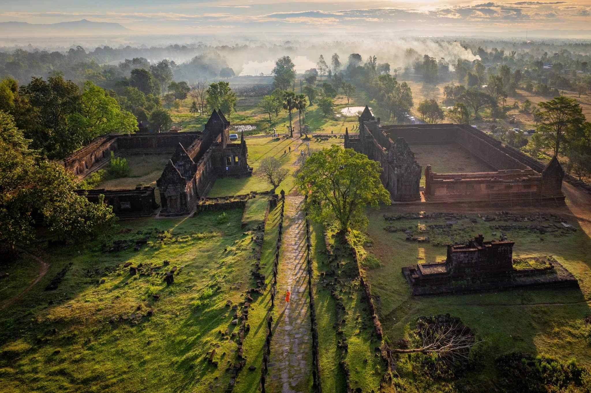 Wat Phou, Di sản văn hóa thế giới của UNESCO, hiện lên cổ kính với bậc đá rêu phong và kiến trúc Khmer đặc trưng. Ảnh: Heritage