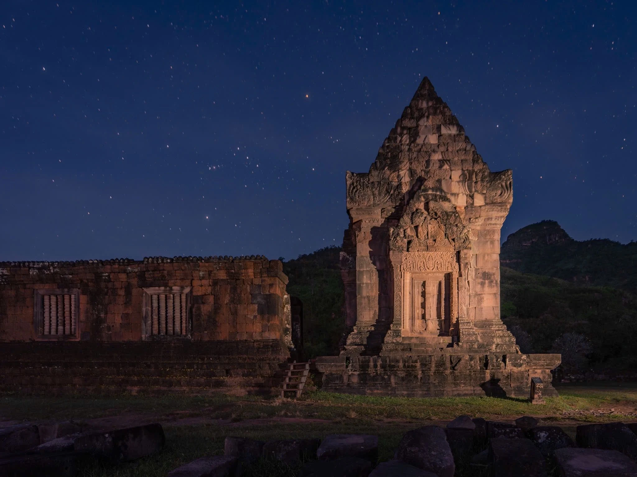 Đền Wat Phou huyền bí khi màn đêm buông. Ảnh: Heritage