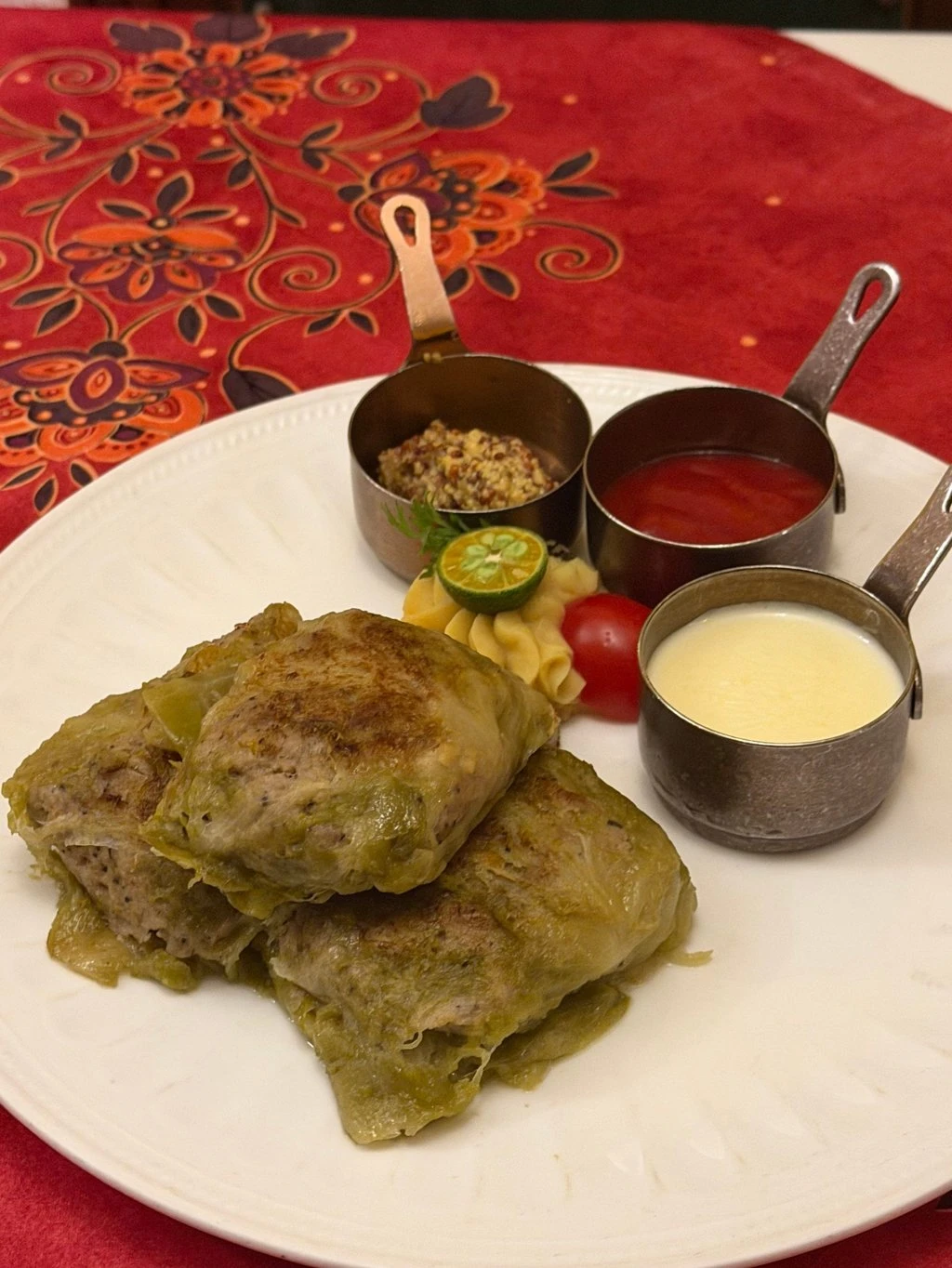 | Món bắp cải cuốn nhồi thịt tại nhà hàng Tatoc, một nhà hàng truyền thống Nga ở Cáp Nhĩ Tân. Ảnh: Xiong Yang |