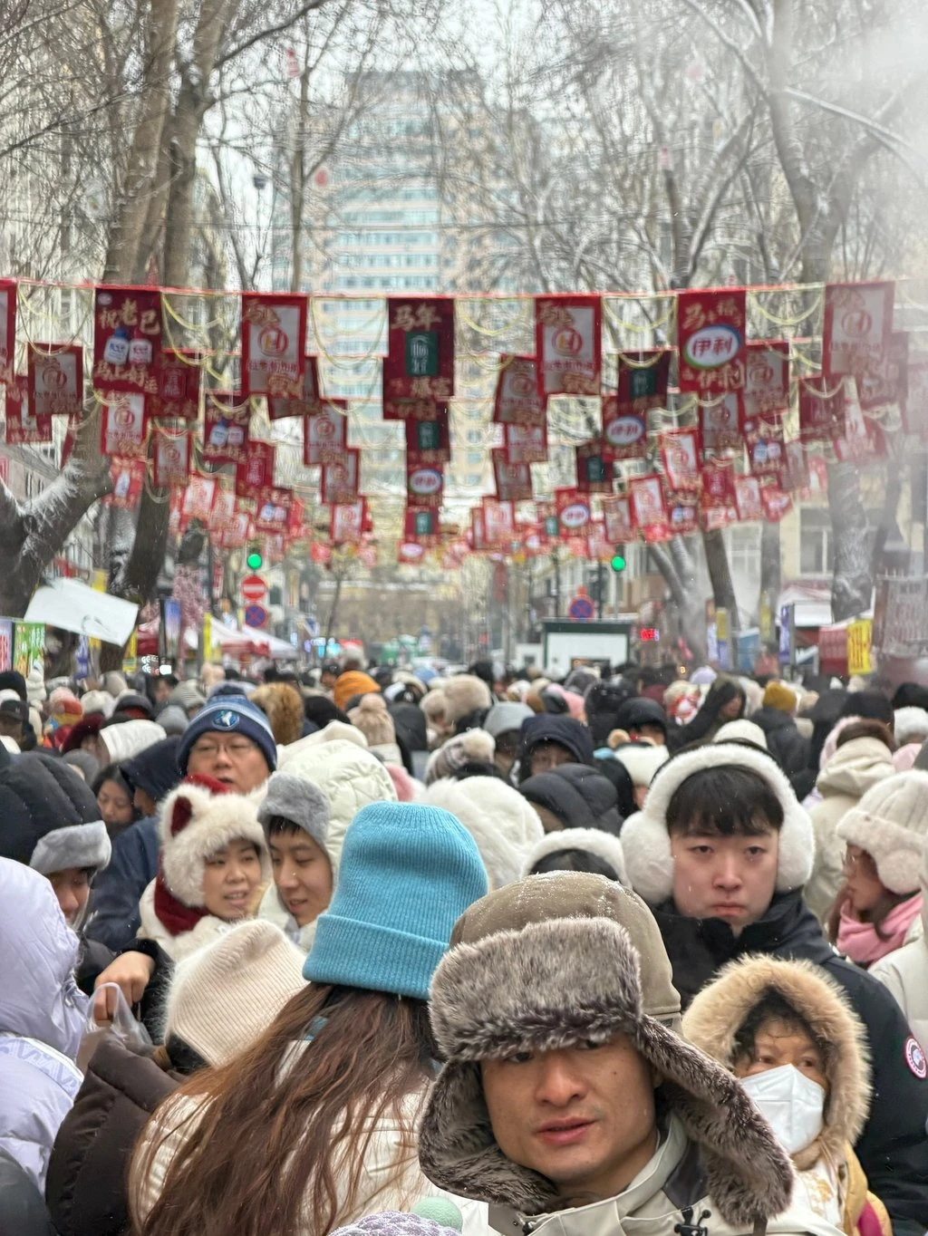 | Đám đông tụ tập tại chợ trên đường Hồng Chuẩn ở Cáp Nhĩ Tân. (Ảnh: Xiong Yang) |