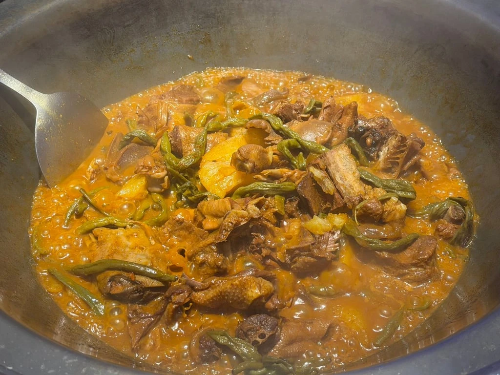 Ẩm thực Đông Bắc Trung Quốc nổi tiếng với những món ăn thịnh soạn, và món cà ri vịt nấu trong nồi gang truyền thống là một trong những món ăn đặc trưng. Thịt ngỗng tươi cùng với sườn heo hoặc nội tạng được ninh nhừ trong một chiếc chảo gang lớn ngay tại bàn ăn, trong khi bánh mì ngô được xếp dọc theo miệng chảo để hút hơi nước và hương vị từ món hầm.