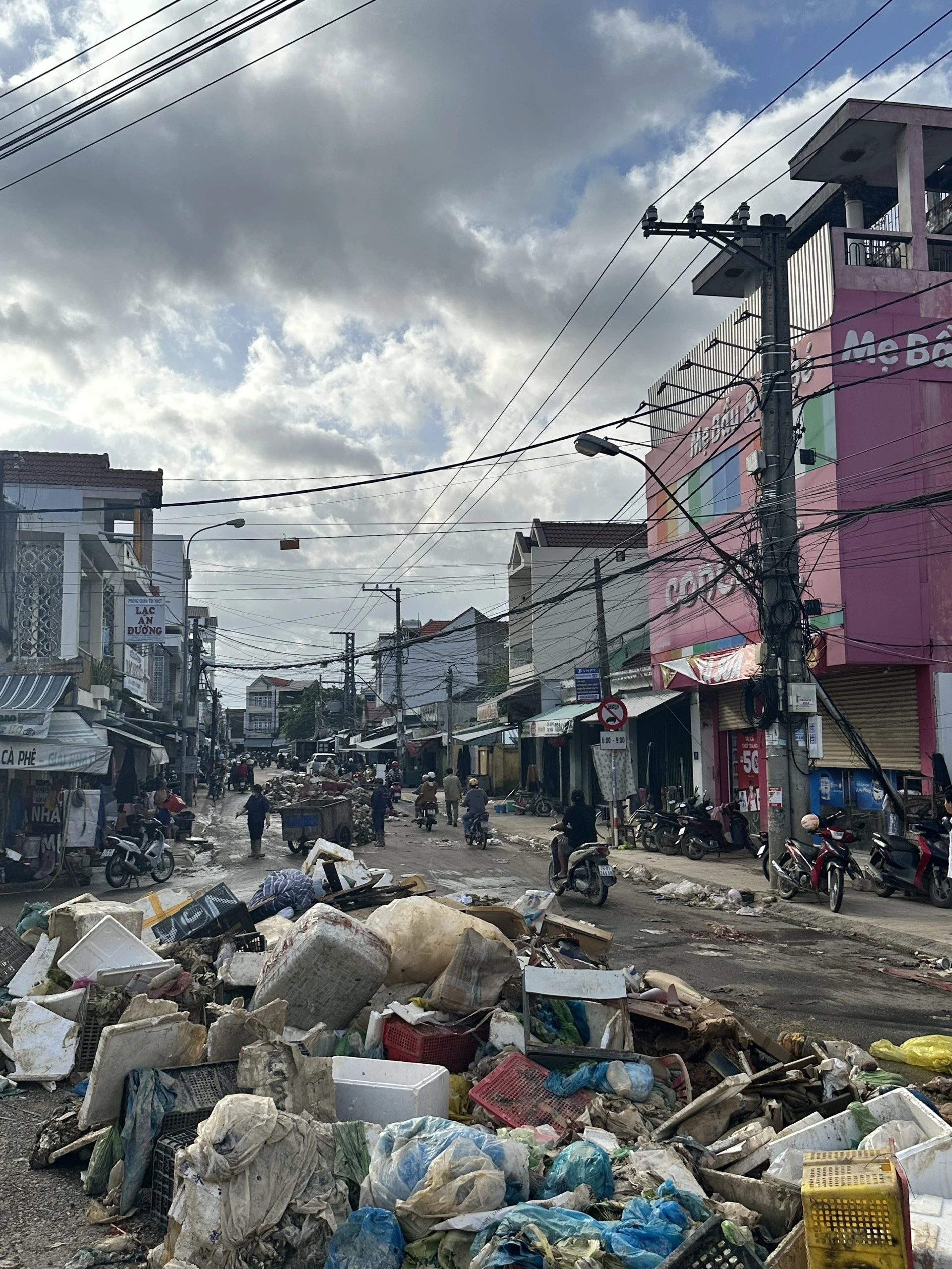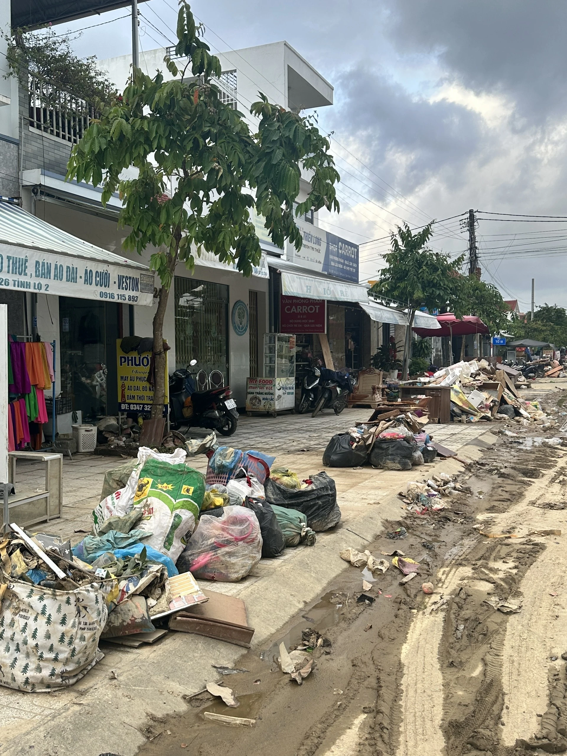 “Đây là tất cả đồ đạc trong nhà, chị xem đi. Em dọn mấy ngày nay vẫn chưa đâu vào đâu. Chị biết nhà em bán gì không? Không biết đúng không? Vì còn gì đâu mà biết – nhà em bán đồ ăn sáng, bàn ghế trôi hết, mọi thứ lấm bùn, hư hỏng, em đành mang vứt ra ngoài. Xung quanh đây, từ trên xuống dưới, từ trong ra ngoài, trước nhà giờ là một bãi rác. Trước kia, đó từng là tài sản, nhưng giờ, chỉ còn là rác. Chờ xe rác tới, gom hết đi thôi” – Dũng, nhà ở một xã thuộc phường Nam Nha Trang, đầu đội chiếc nón tai bèo có nơ, vừa chà rửa đồ đạc sau trận lũ vừa nói.