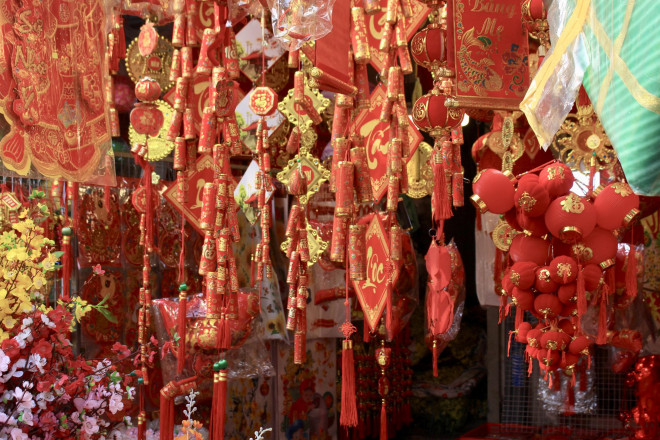 Là con đường chuyên buôn bán vật phẩm trang trí Tết, đường Hải Thượng Lãn Ông (quận 5) hàng năm đều được nhuộm đỏ bởi những câu liễn, phong pháo, phong bao lì xì từ cuối tháng 12. Đến con đường này vào dịp năm mới, người dân không chỉ chọn được những món đồ trang trí Tết ưng ý mà còn có thể chụp lại những bức ảnh phù hợp không khí tân niên