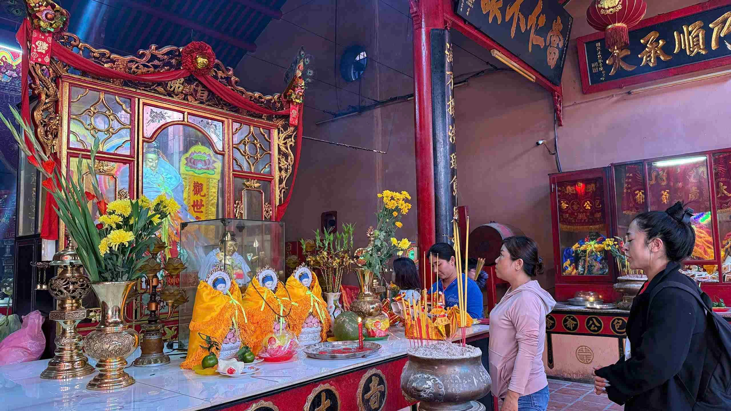 Nơi đây thờ Thiên Hậu Thánh Mẫu và Chúa Sinh Nương Nương - hai vị thần được cộng đồng người Hoa tôn kính, cầu mong bình an và phúc lộc. Ảnh: Thiên Phương