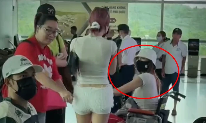 Lan Ngọc di chuyển khó khăn và cần ekip dìu sau khi bước xuống xe