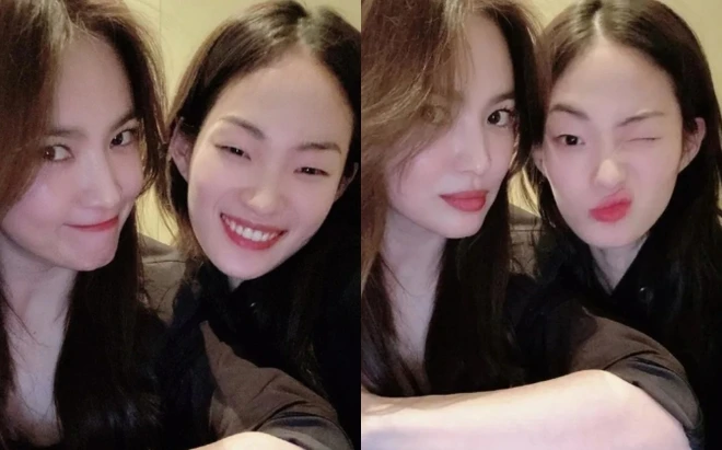 Song Hye Kyo thường xuyên đăng ảnh chụp chung với cô em thân thiết lên trang cá nhân. Nếu như nữ diễn viên đình đám gây ấn tượng với nét đẹp ngọt ngào, đằm thắm thì người mẫu Shin Hyun Ji lại nổi bật với vẻ sắc sảo đậm chất Á Đông. Ảnh: X