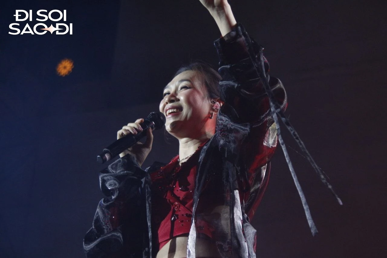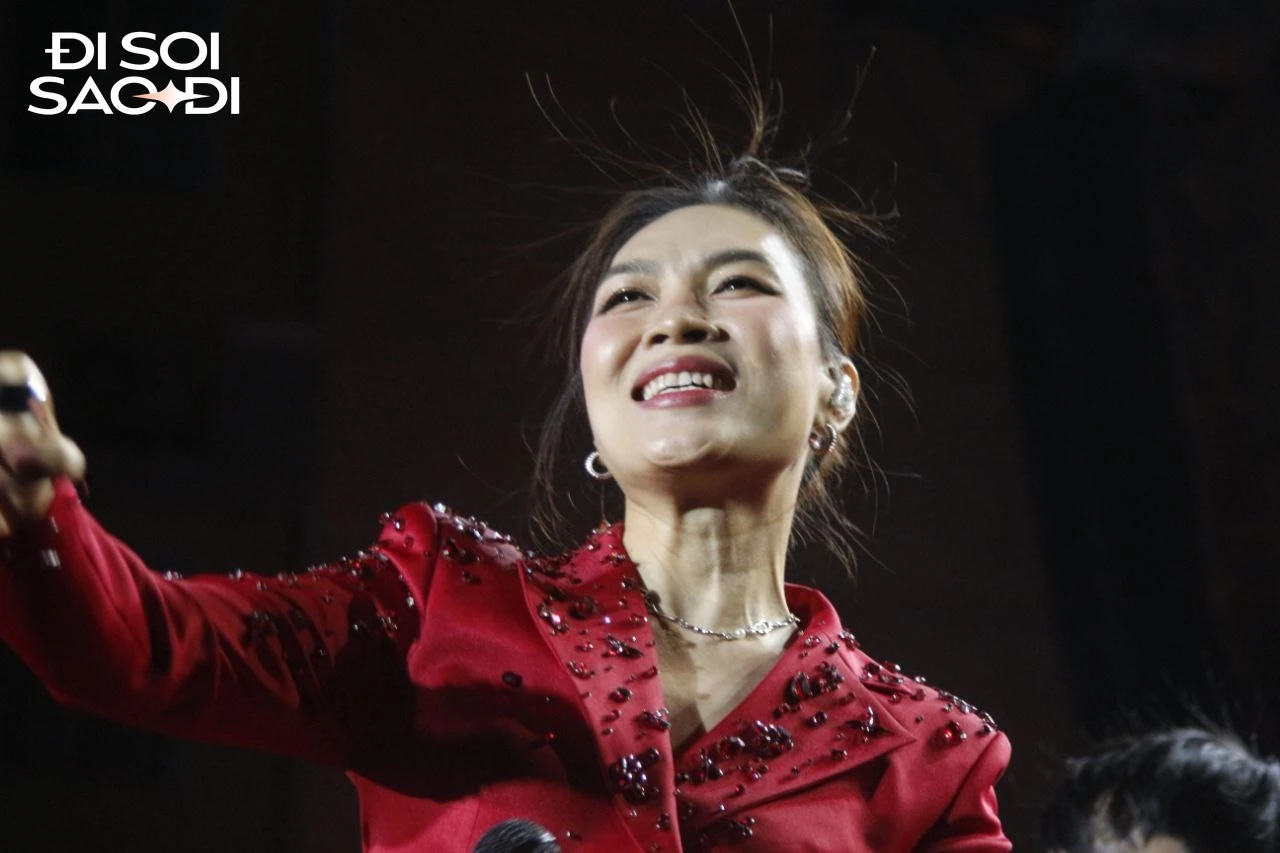 Tối ngày 22/11, TP. Hồ Chí Minh ngập tràn không khí lễ hội với 6 sự kiện âm nhạc diễn ra đồng thời, trong đó sự kiện tại phố đi bộ với sự góp mặt của Mỹ Tâm thu hút nhiều sự chú ý của khán giả. “Họa mi tóc nâu” là cái tên được mong đợi nhất tại sự kiện này. Xuất hiện với phong cách mạnh mẽ và thời thượng, Mỹ Tâm chọn áo khoác dài màu đen phom dáng bồng bềnh quyền lực, khoác ngoài bộ vest đỏ rực cắt xẻ táo bạo, kết hợp quần ống rộng và kính râm. Sự phối hợp giữa sắc đỏ và đen tạo nên thần thái ngôi sao đầy uy lực, giúp nữ ca sĩ làm chủ sân khấu ngay từ khoảnh khắc đầu tiên.