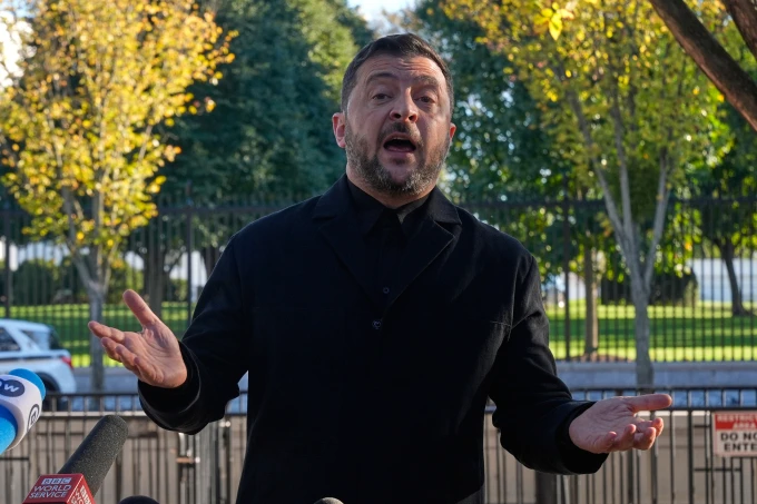 Tổng thống Ukraine Volodymyr Zelensky trả lời báo giới bên ngoài Nhà Trắng sau cuộc gặp với Tổng thống Donald Trump ngày 17/10. Ảnh: AP