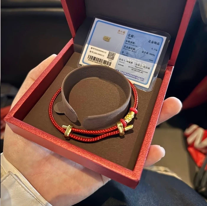 Đặc biệt, nữ diễn viên đã trực tiếp tặng cho các phóng viên và một số người hâm mộ may mắn những chiếc vòng tay hình cá nhỏ được chế tác từ vàng nguyên chất. Điều đáng nói, đây là những sản phẩm được Vương Sở Nhiên đặt làm riêng thay vì mua các mẫu mã có sẵn trên thị trường. Sự đầu tư này không chỉ thể hiện mức độ chịu chi mà còn cho thấy sự trân trọng đặc biệt mà nàng tiểu hoa dành cho công chúng. Hành động này ngay lập tức “bùng nổ” trên các nền tảng mạng xã hội bởi trong bối cảnh giá vàng đang neo ở mức cao ngất ngưởng việc tặng vàng thật được xem là một phúc lợi cực kỳ thực tế, khác hẳn với những món quà lưu niệm thông thường như ảnh thẻ hay poster.
