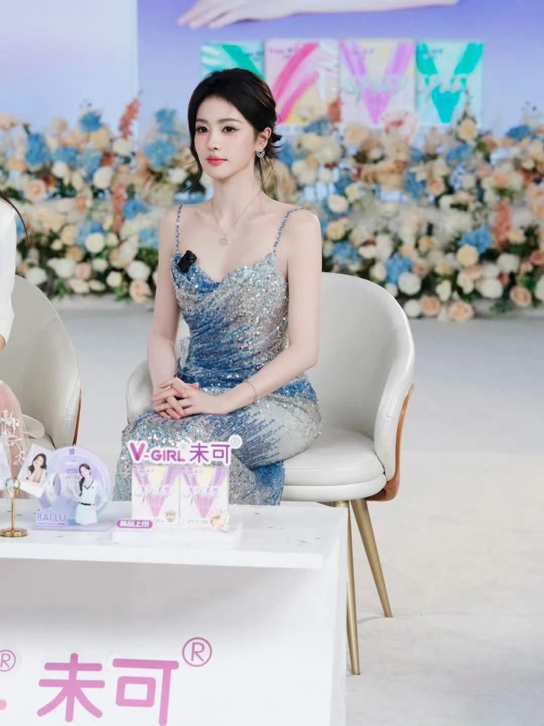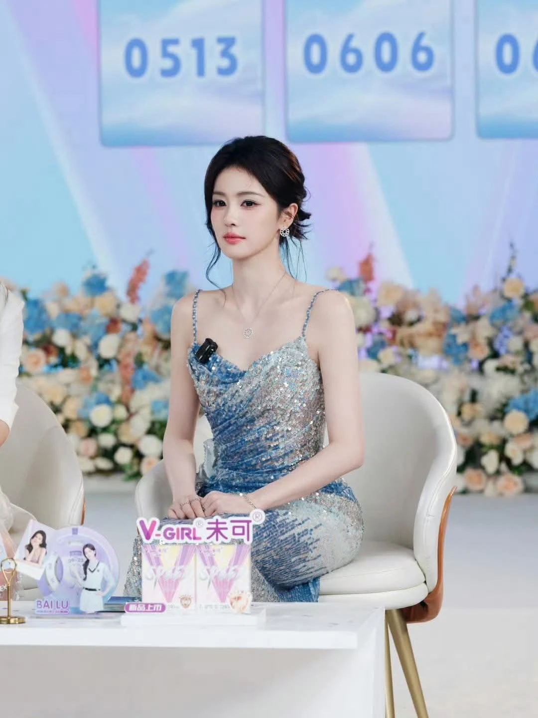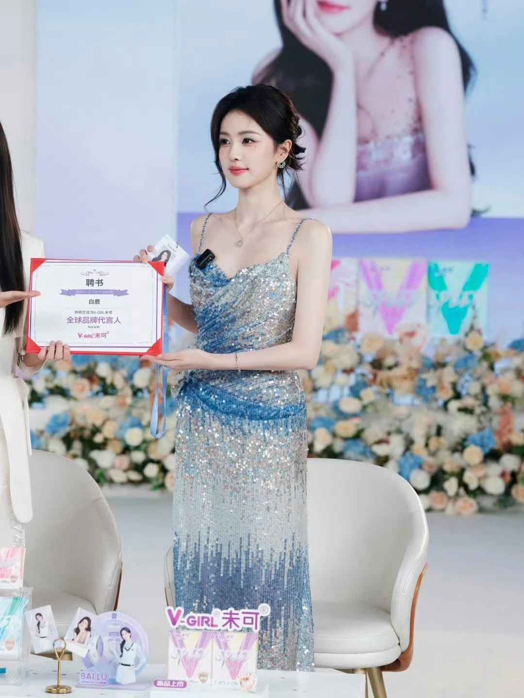 Với tông màu bạc pha lam và kỹ thuật đính kim chuyển sắc thủ công, bộ váy ôm sát của Bạch Lộc giúp nữ diễn viên Hoa ngữ khoe trọn vóc dáng thanh mảnh, khác biệt hẳn so với hình ảnh kín đáo thường thấy ở các ngôi sao nữ Trung Quốc.