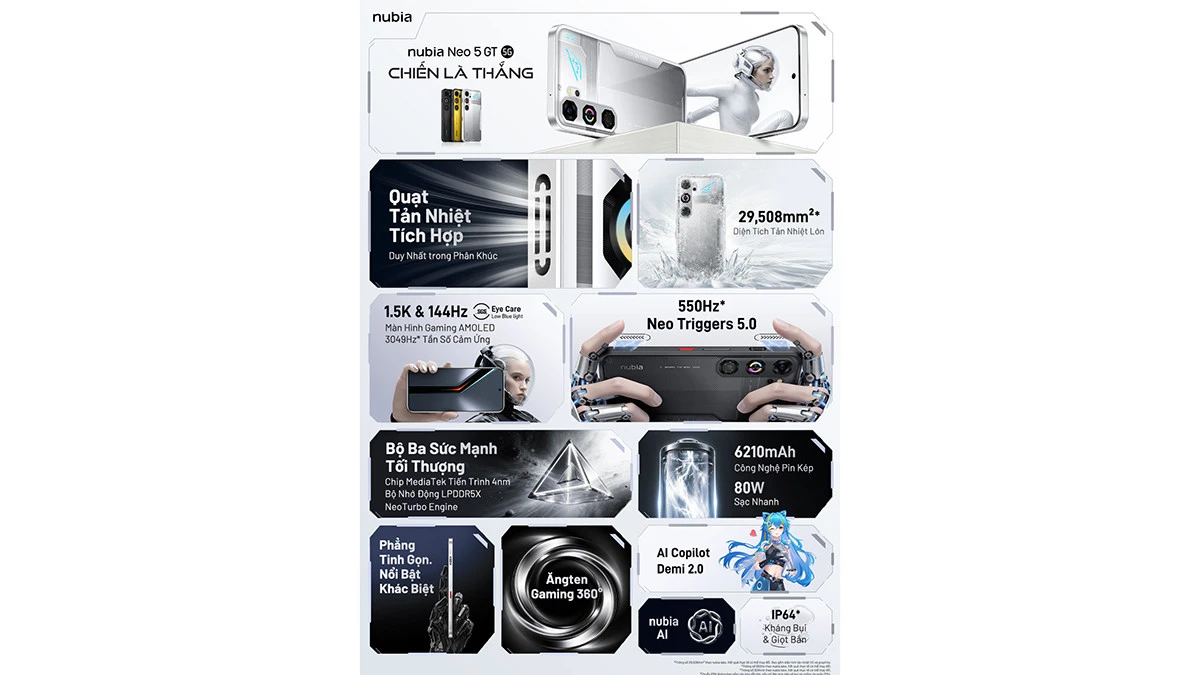 nubia ra mắt NEO 5 Series tại Việt Nam: Gaming phone sở hữu quạt tản nhiệt và Neo Triggers 5.0