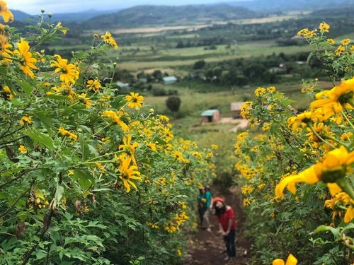 Từ cuối tháng 10 đến đầu tháng 11, Chư Đang Ya phủ kín trong sắc vàng rực rỡ khi khắp nơi, hoa dã quỳ bung nở, từ dọc hai bên đường dẫn đến chân núi đến những sườn dốc quanh co dẫn lên đỉnh núi.