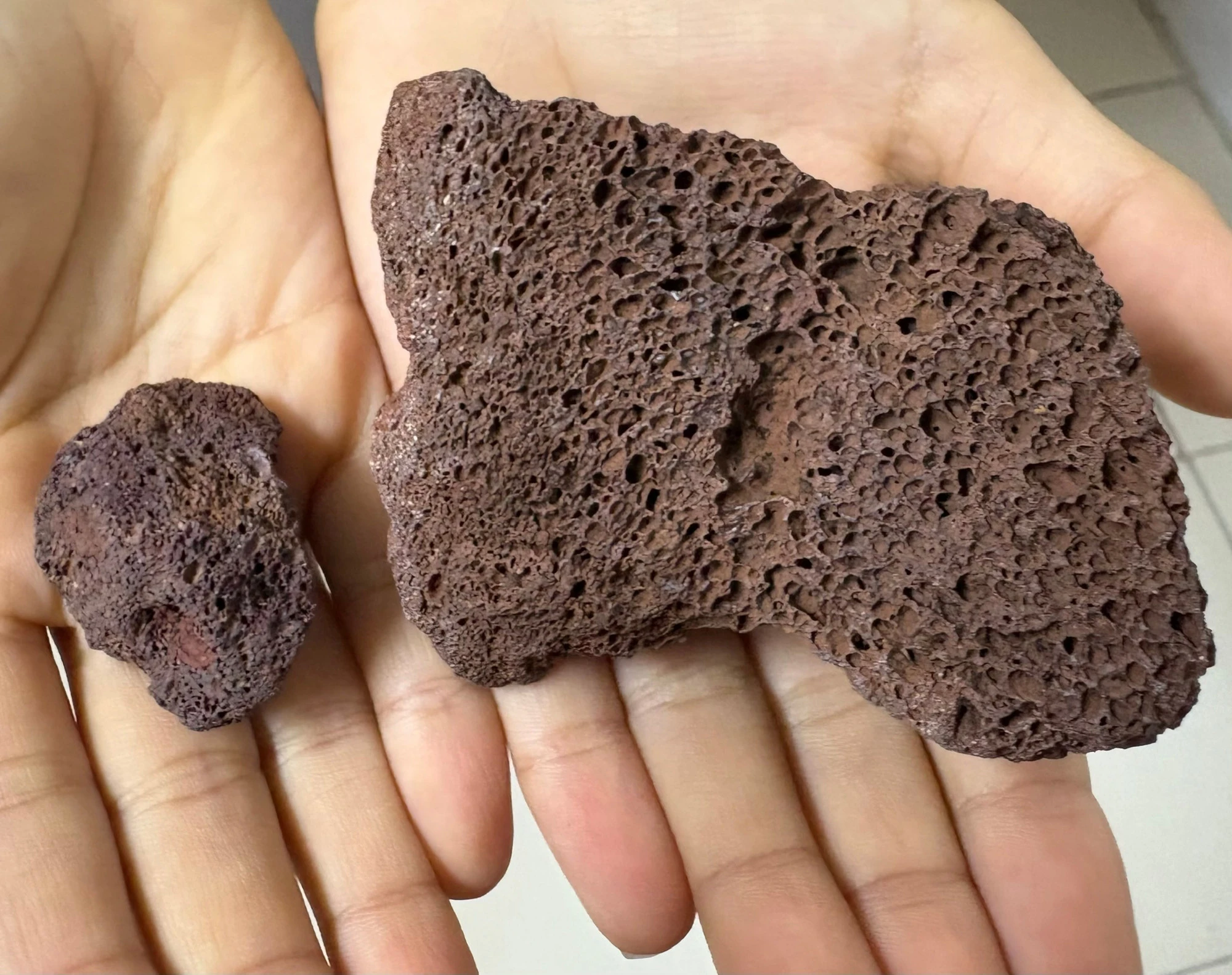 Du khách cũng có cơ hội bắt gặp những dấu tích của núi lửa, từ những tảng đá lớn bên lối đi đến những viên nham thạch nằm rải rác khắp sườn núi, những viên đá macma với đặc trưng hoàn toàn khác với các loại đá thông thường khi lỗ rỗ nhiều lỗ khí, nhẹ, xốp, có màu nâu đỏ và khá giòn.