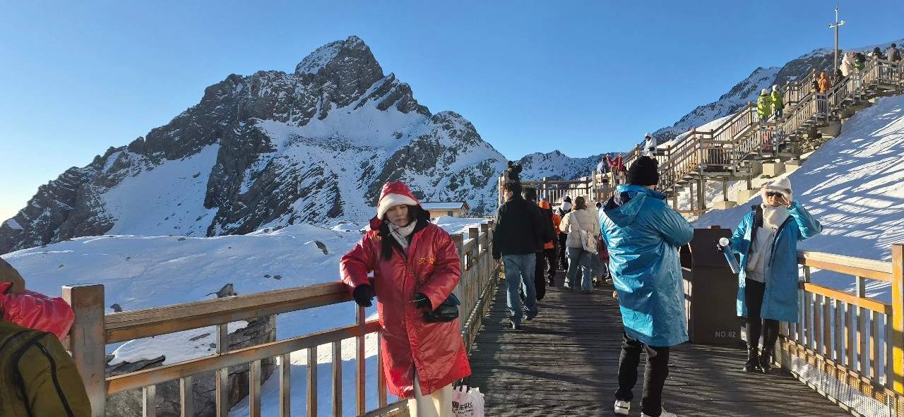 Du khách tham quan núi tuyết Ngọc Long ở độ cao hơn 4.500m so với mực nước biển