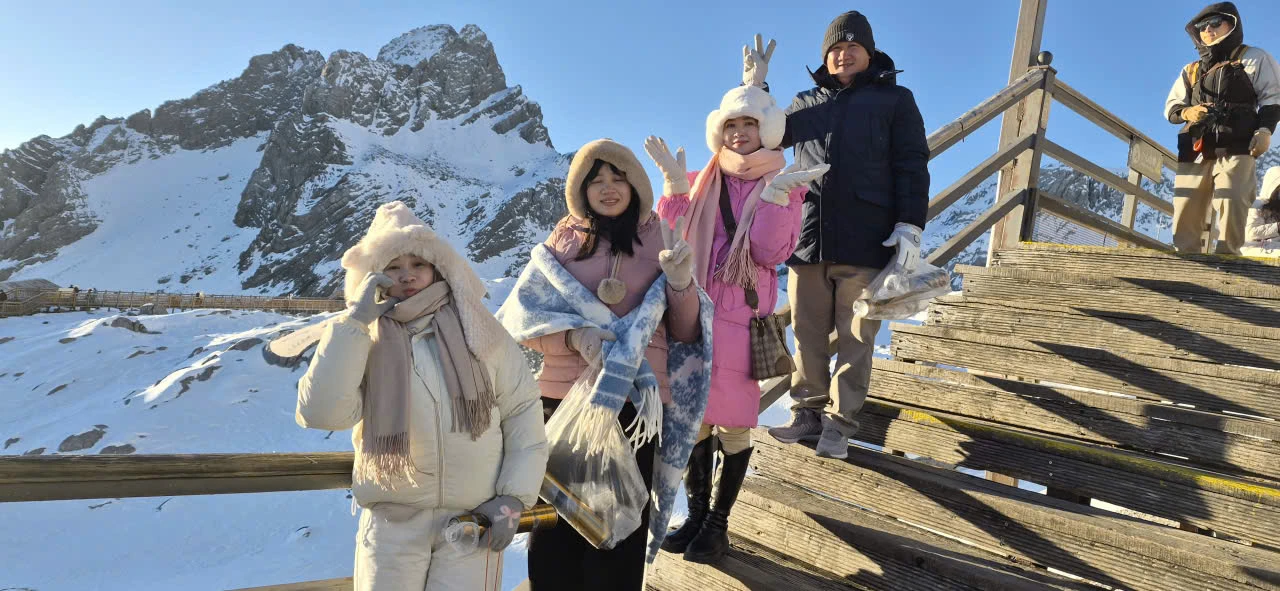 Bất chấp cái lạnh giá buốt, ngay từ 5 giờ sáng, chúng tôi đã bắt đầu hành trình khám phá núi tuyết Ngọc Long hùng vĩ, cách trung tâm Lệ Giang khoảng 45 phút lái xe.