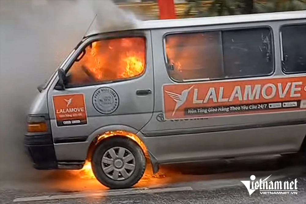 Cũng theo CSGT, sau khi ô tô bốc cháy, lực lượng chức năng đã sử dụng bình chữa cháy tại chỗ để dập lửa nhưng bất thành. Sau đó, xe này tự trôi về phía trước và đâm vào khu vực rào chắn thi công ở ven đường.