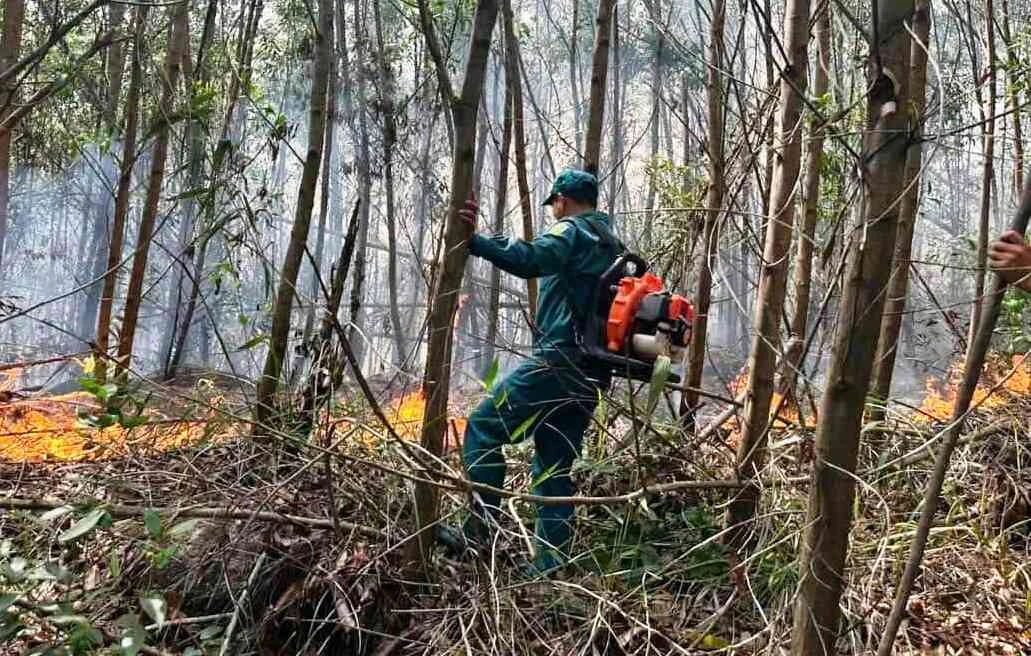 Lực lượng cứu hộ và nhiều xe chữa cháy được huy động đến hiện trường nhưng công tác chữa cháy gặp khó khăn do địa hình đồi dốc, núi cao hiểm trở.