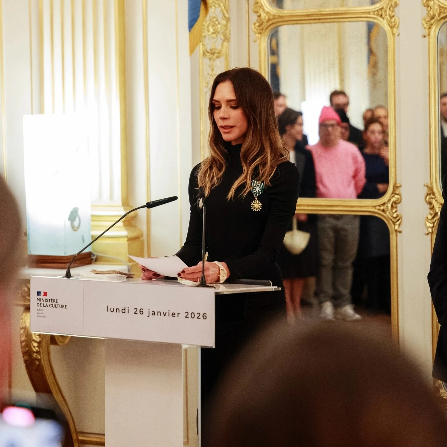 Ngày 27/1, Victoria Beckham tiếp tục gây chú ý khi cùng gia đình tham dự lễ phong tặng danh hiệu Chevalière de l'Ordre des Arts et des Lettres của Bộ Văn hóa Pháp. Đây là danh hiệu huân chương danh giá của Pháp, do Bộ Văn hóa Pháp trao tặng, nhằm tôn vinh những cá nhân có đóng góp xuất sắc cho nghệ thuật, văn hóa và sự lan tỏa văn hóa Pháp ra thế giới.