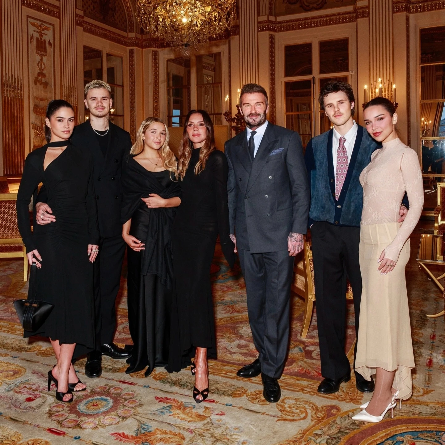 Cả gia đình Beckham, gồm bạn gái của 2 con trai, đã có mặt tại sự kiện vinh danh Victoria Beckham, ngày 27/1 (Ảnh: IG).