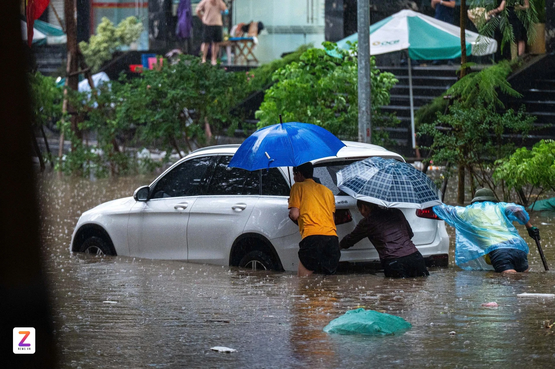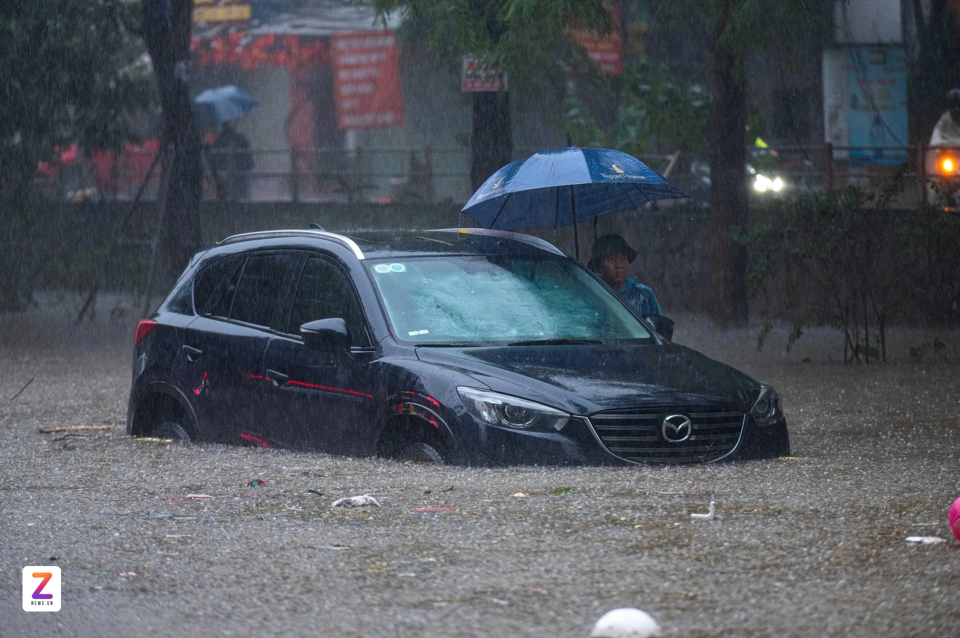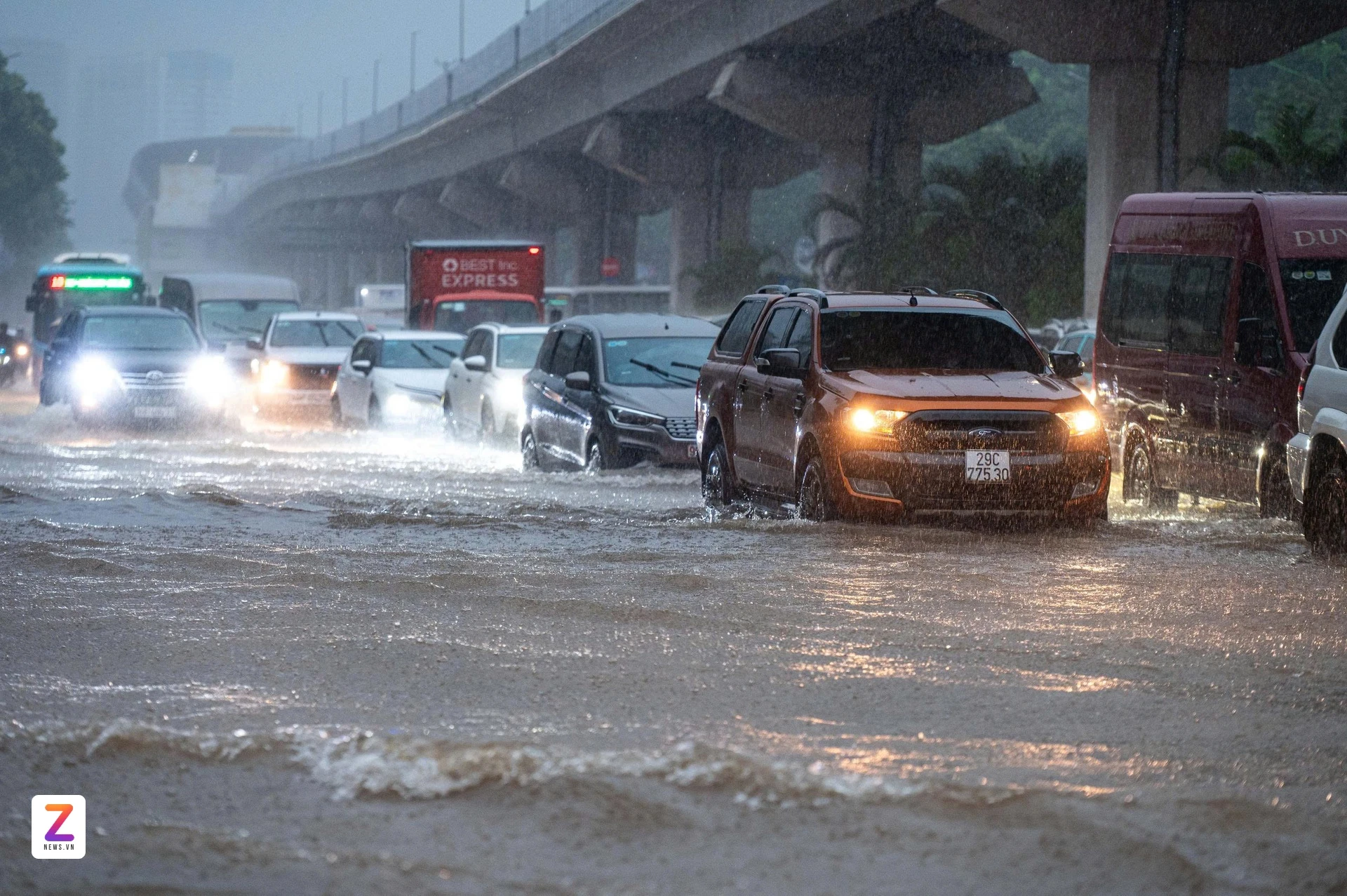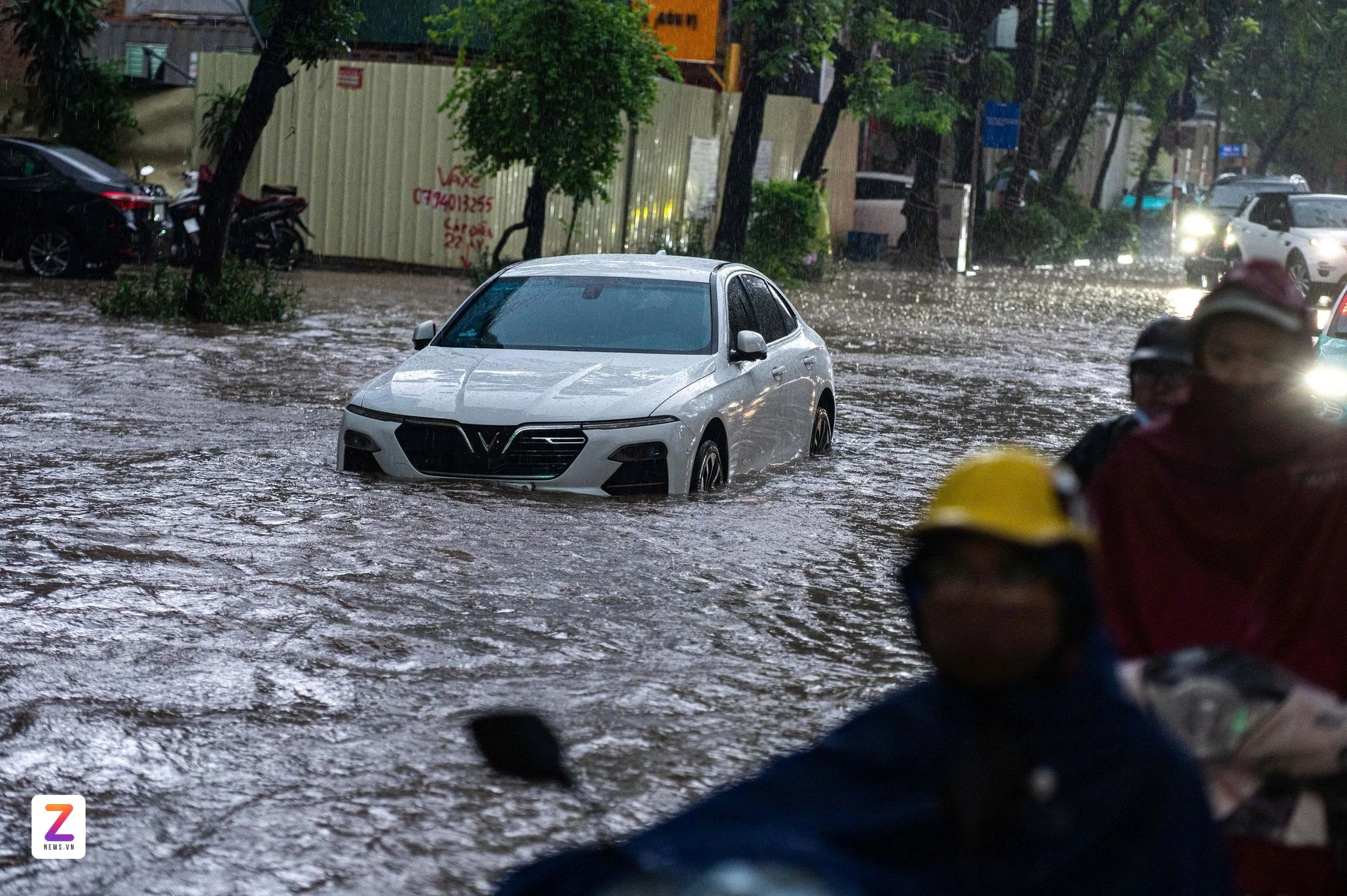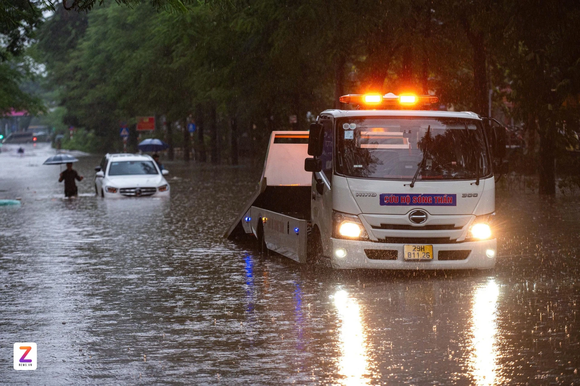 Nhiều tuyến đường ở Hà Nội ngập sâu trong sáng 7/10 khiến các phương tiện gặp khó khăn trong di chuyển, thậm chí chết máy , phải gọi xe cứu hộ.