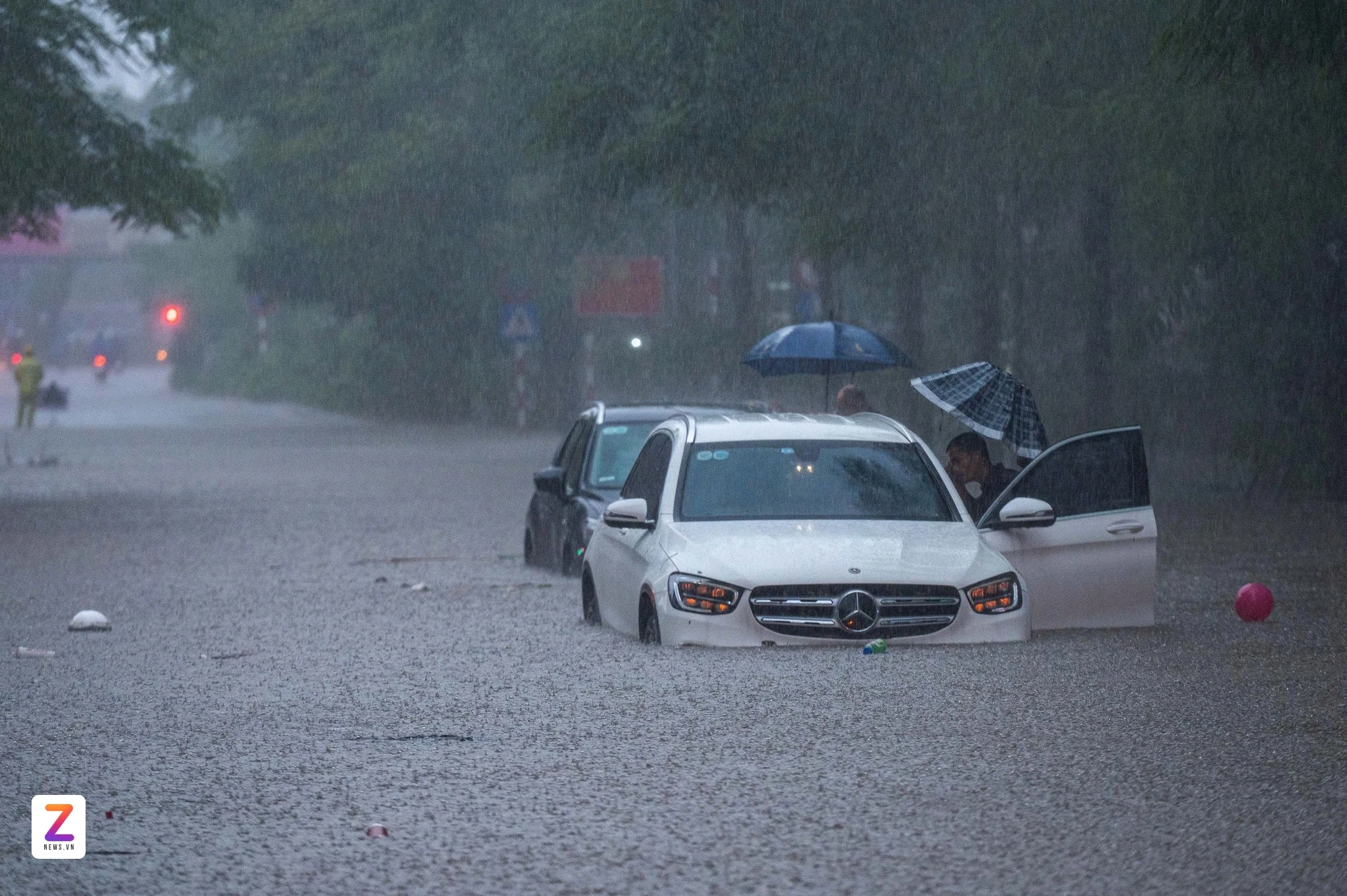 Ôtô chết máy la liệt giữa ‘biển ngập’ ở Hà Nội
