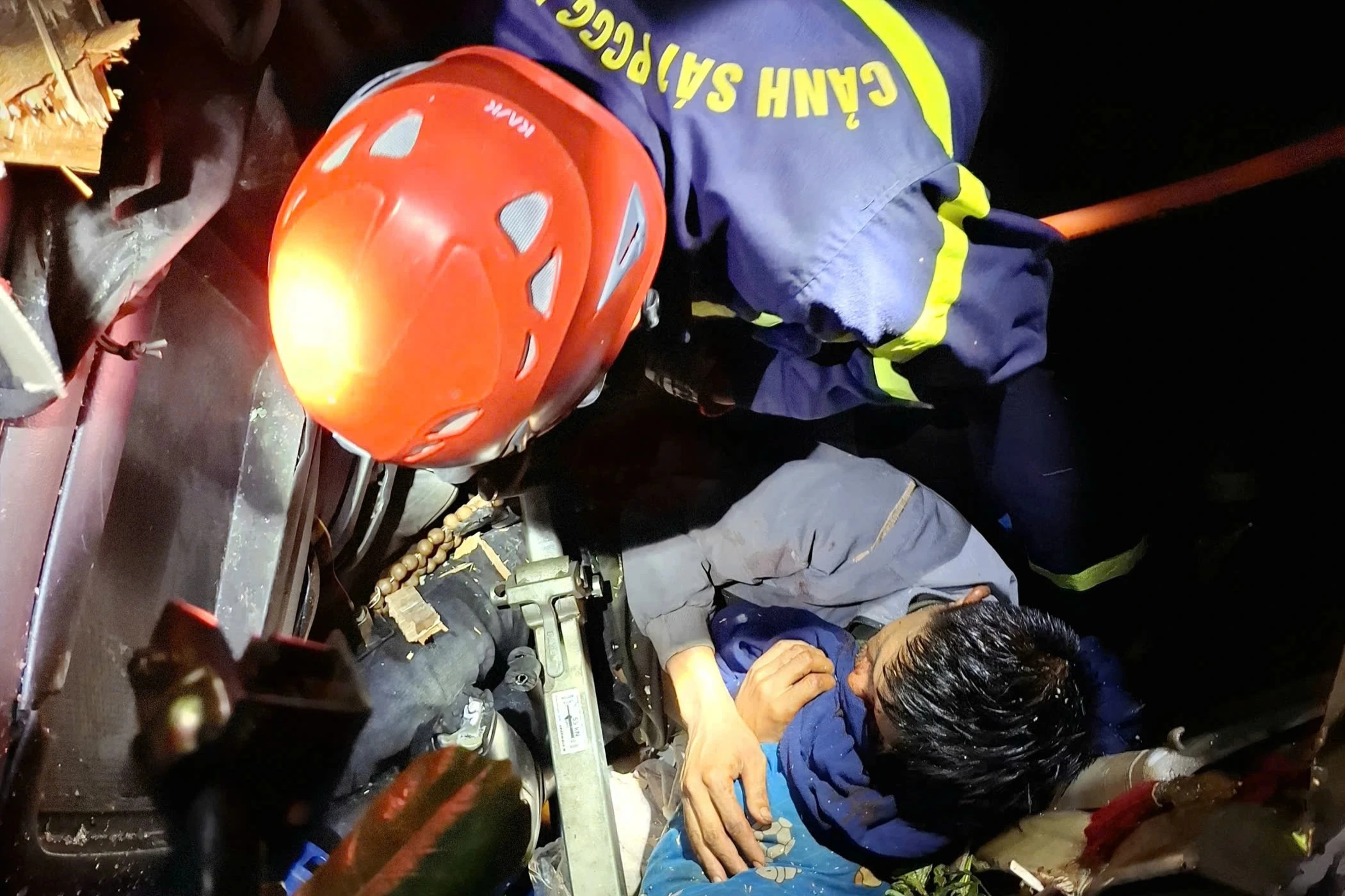 Bị kẹt cứng trong cabin, tài xế T. rất hoảng loạn nên được các chiến sĩ động viên tinh thần và nỗ lực triển khai các biện pháp cứu hộ. Do trời tối, xe tải nằm chênh vênh bên vực sâu có thể lật tiếp bất cứ lúc nào. Các chiến sĩ rất thận trọng trong cứu hộ với quyết tâm đưa nạn nhân ra ngoài an toàn.