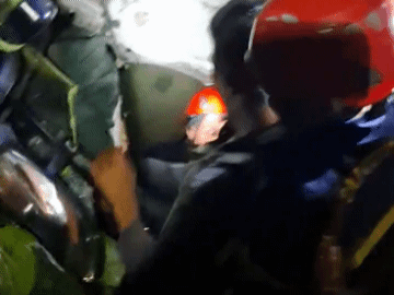 Sau nhiều giờ nỗ lực cứu hộ trong điều kiện khó khăn, nam tài xế được đưa ra khỏi xe tải an toàn (Ảnh: Cắt từ clip).