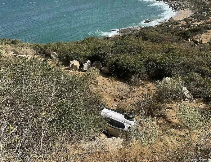 Xe 4 chỗ rơi xuống vực sâu ở đường đèo ven biển đoạn qua xã Phước Dinh, người phụ nữ chấn thương nặng, chiều mùng 4 Tết (20/2).