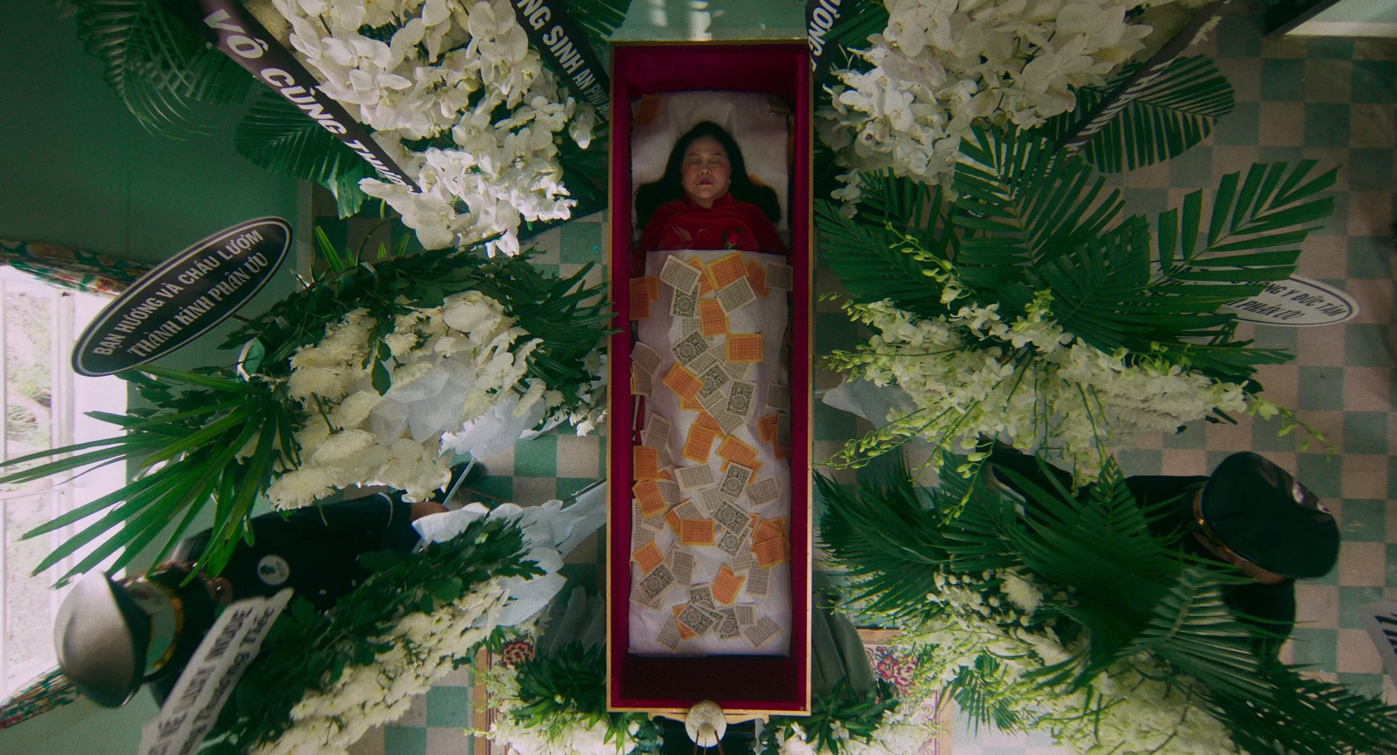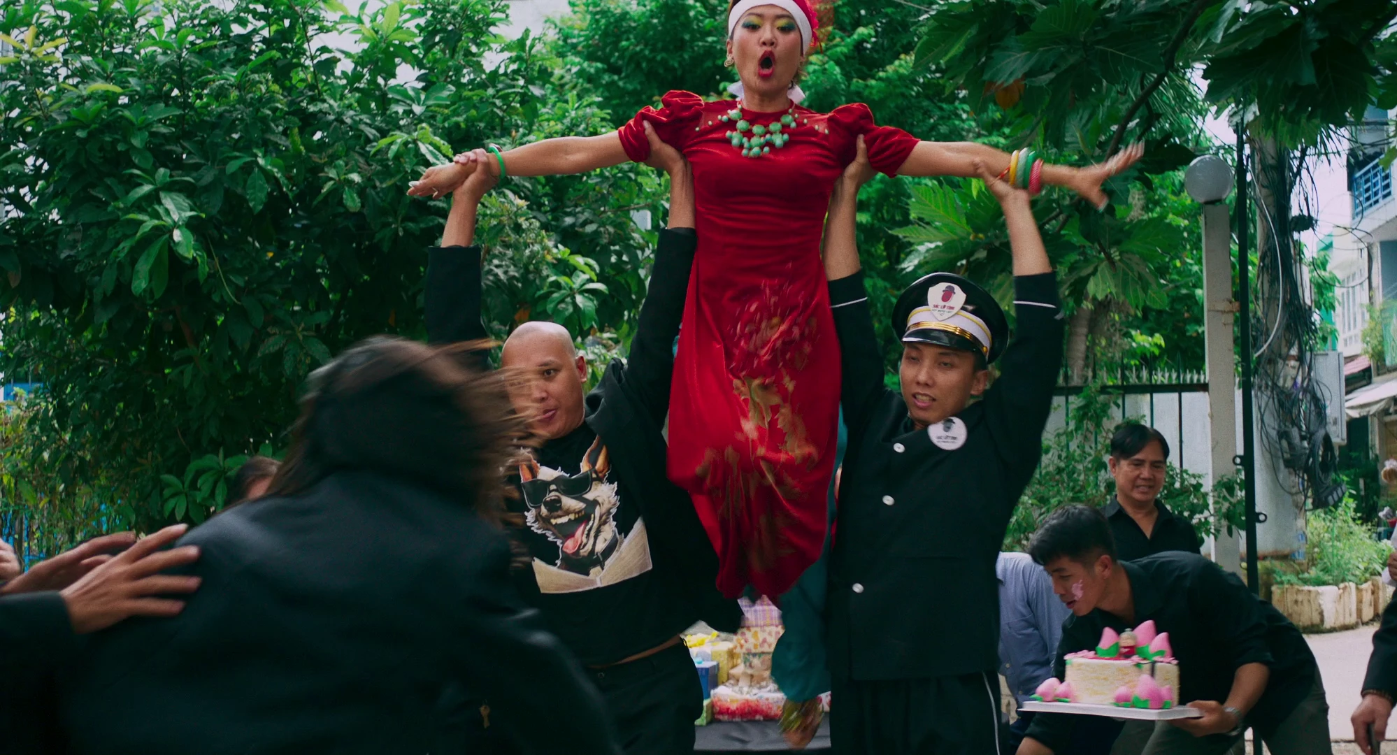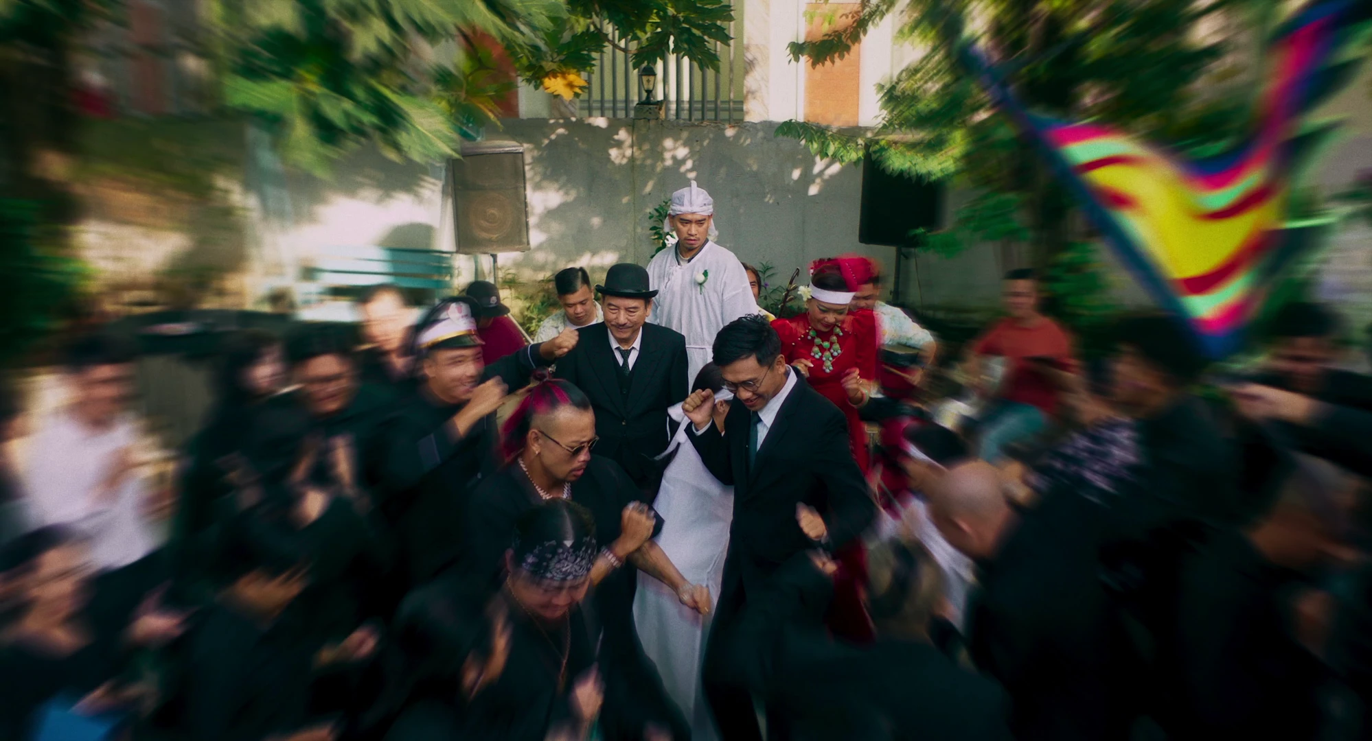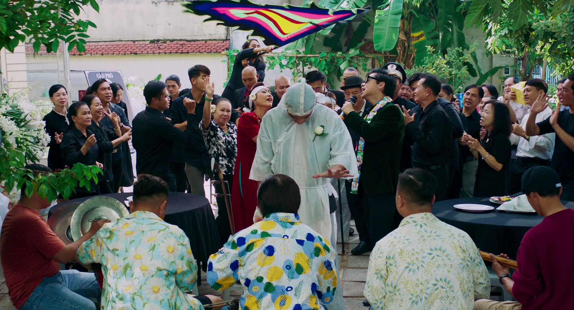 Từ đây, trailer đưa khán giả vào không khí vừa phi lý vừa kịch tính: khách khứa vừa nhảy múa, hát hò ngay trong tang lễ của... chính bà Tâm. Trên nền bản phối "60 năm cuộc đời" bằng kèn trống đám ma, những hình ảnh nhảy múa lại trở nên thâm trầm, như một lời nhắc về ranh giới mỏng manh giữa vui và buồn. Sự kết hợp không chỉ gây ấn tượng thị giác, mà còn khơi dậy cảm giác căng thẳng xen lẫn tò mò và hoang mang của khán giả.