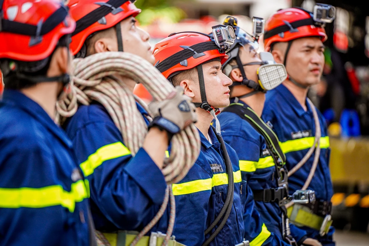 Trong poster, các nghệ sĩ khoác lên mình màu áo đặc trưng của những người hùng thầm lặng, luôn sẵn sàng lao vào biển lửa để giành giật sự sống cho người dân. Mỗi ánh mắt hướng thẳng về phía trước, mỗi động tác dứt khoát giữa khung hình tĩnh lặng nhưng tràn đầy nội lực đều thể hiện thần thái của người chiến sĩ – bình tĩnh, bản lĩnh, quả cảm và nhân hậu.
