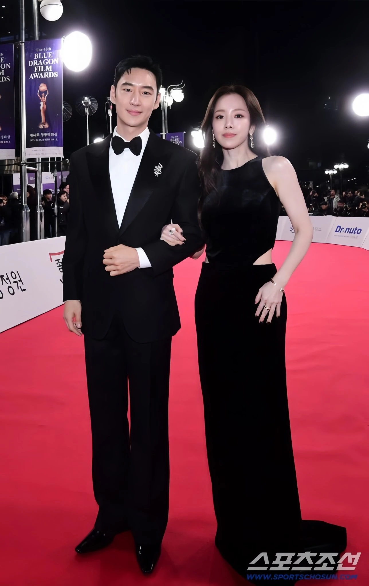 Do cặp sao không cùng nhau sánh đôi trên thảm đỏ, truyền thông Hàn đành ghép tạm ảnh lẻ của cả hai vào chung khung hình để dân tình ngắm đỡ